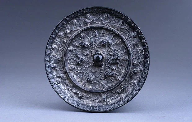 首先,博物馆展出的铜镜大部分都是展示背面,所以没法照,就跟现在镜子背面一样。关于展示背面的原因,主要是铜镜作为古人的镜子正面一般没有任何装饰是光滑的不具有观赏性,背面一般有图案、纹饰、铭文等,能够展现当时的社会文化。