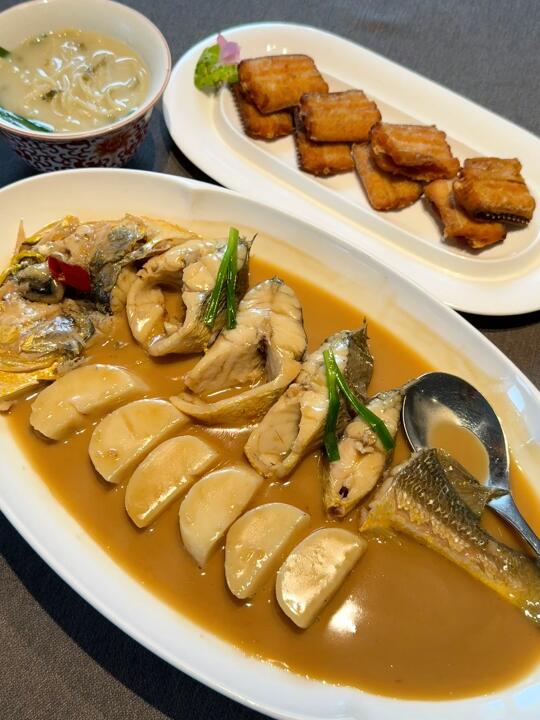 鲜嫩的大黄鱼,搭配糯叽叽的年糕,食材很新鲜,浓郁入味,很下饭!味道很是鲜美!