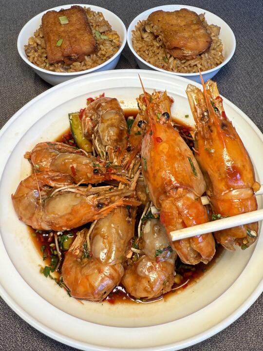 个头超大的罗氏虾🦐,肉质饱满又紧实,蘸汁吃,咸香可口!