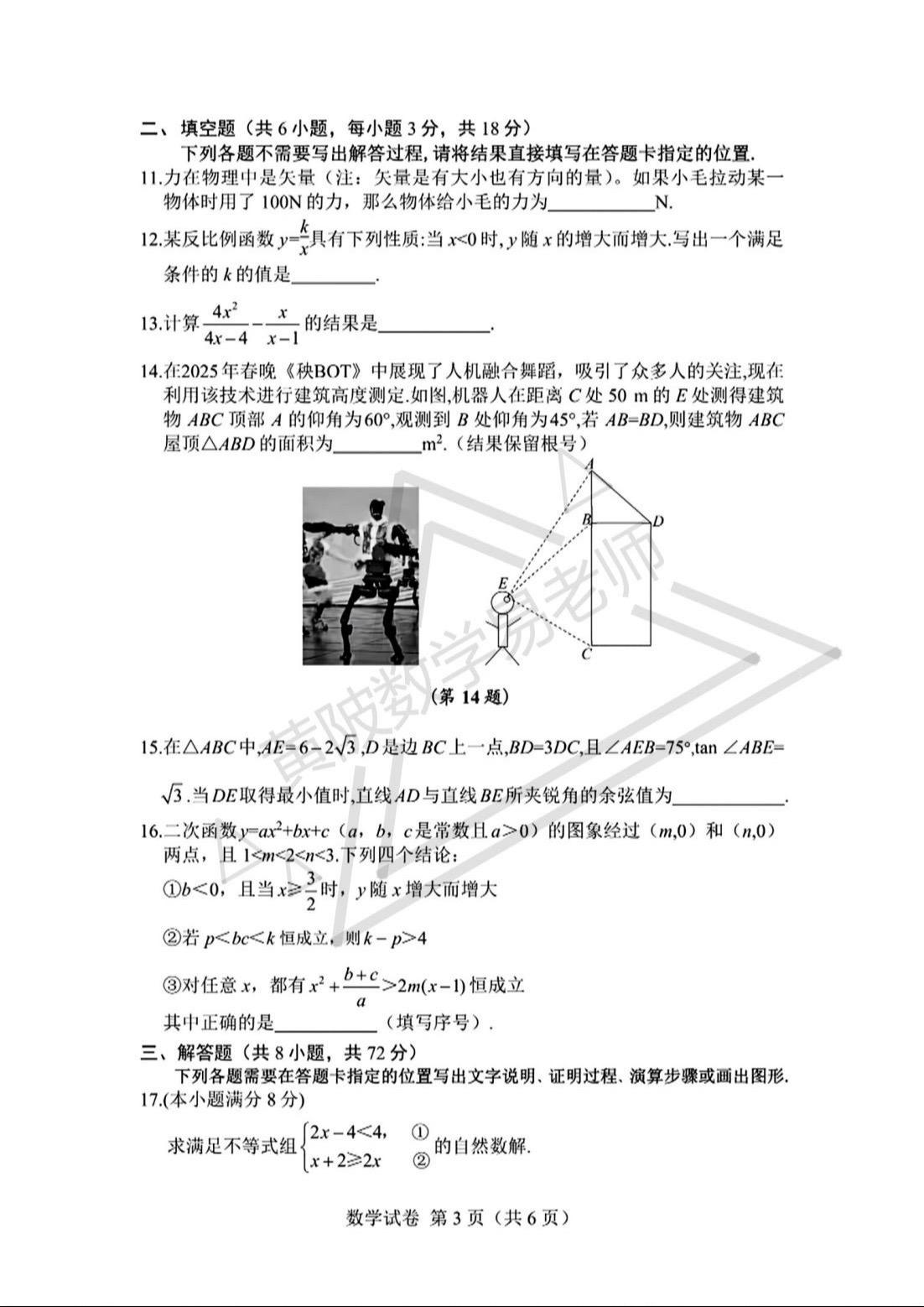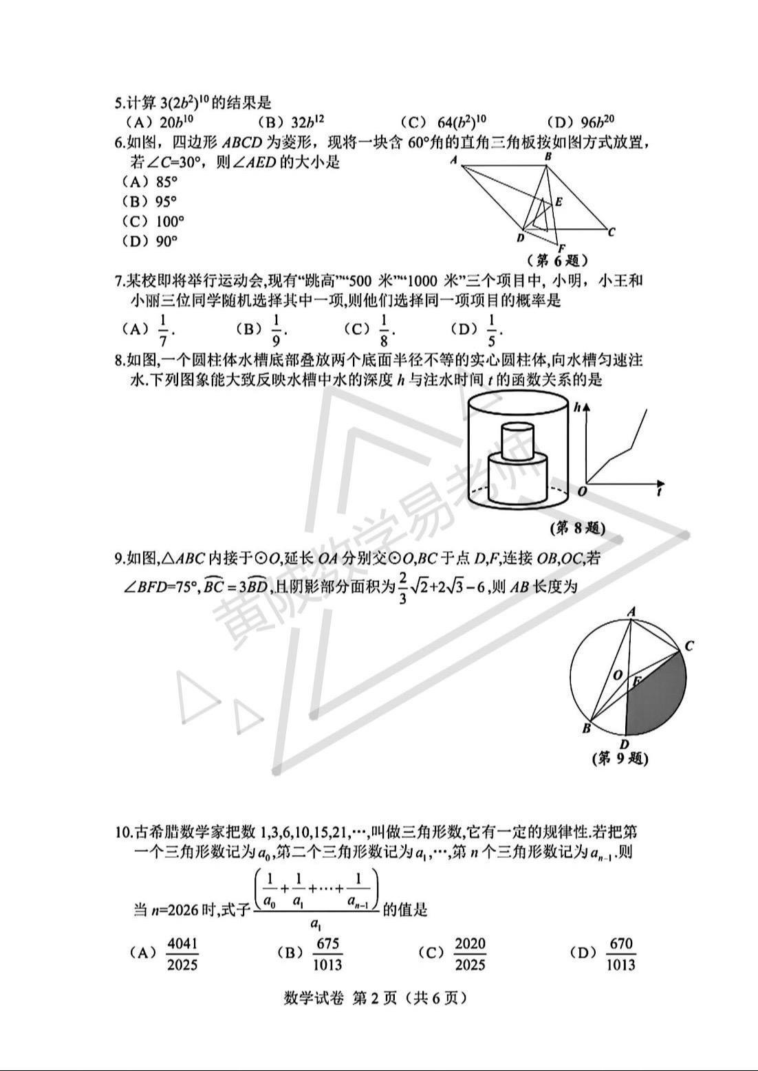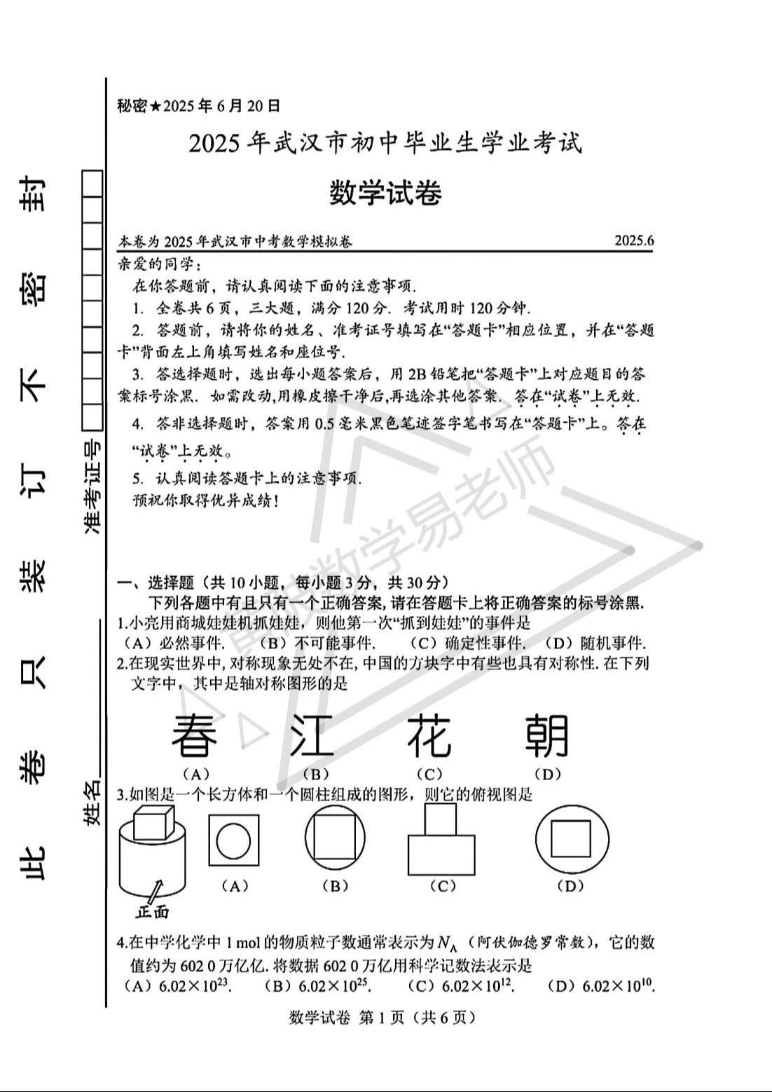 黄陂区2025年中考数学试卷。每天跟我涨知识