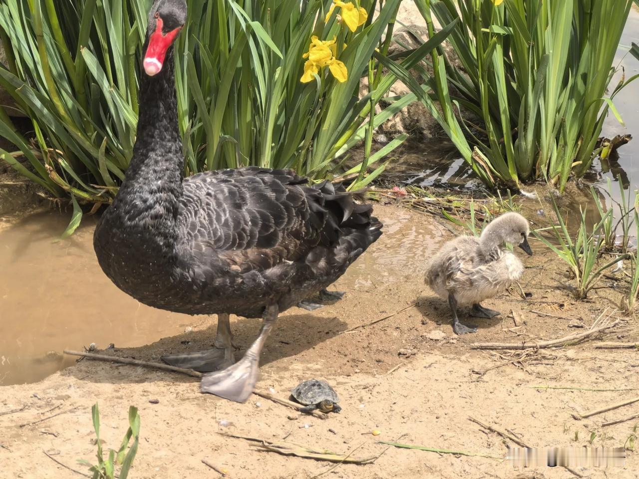 优雅的黑天鹅,带着宝宝玩耍。。。