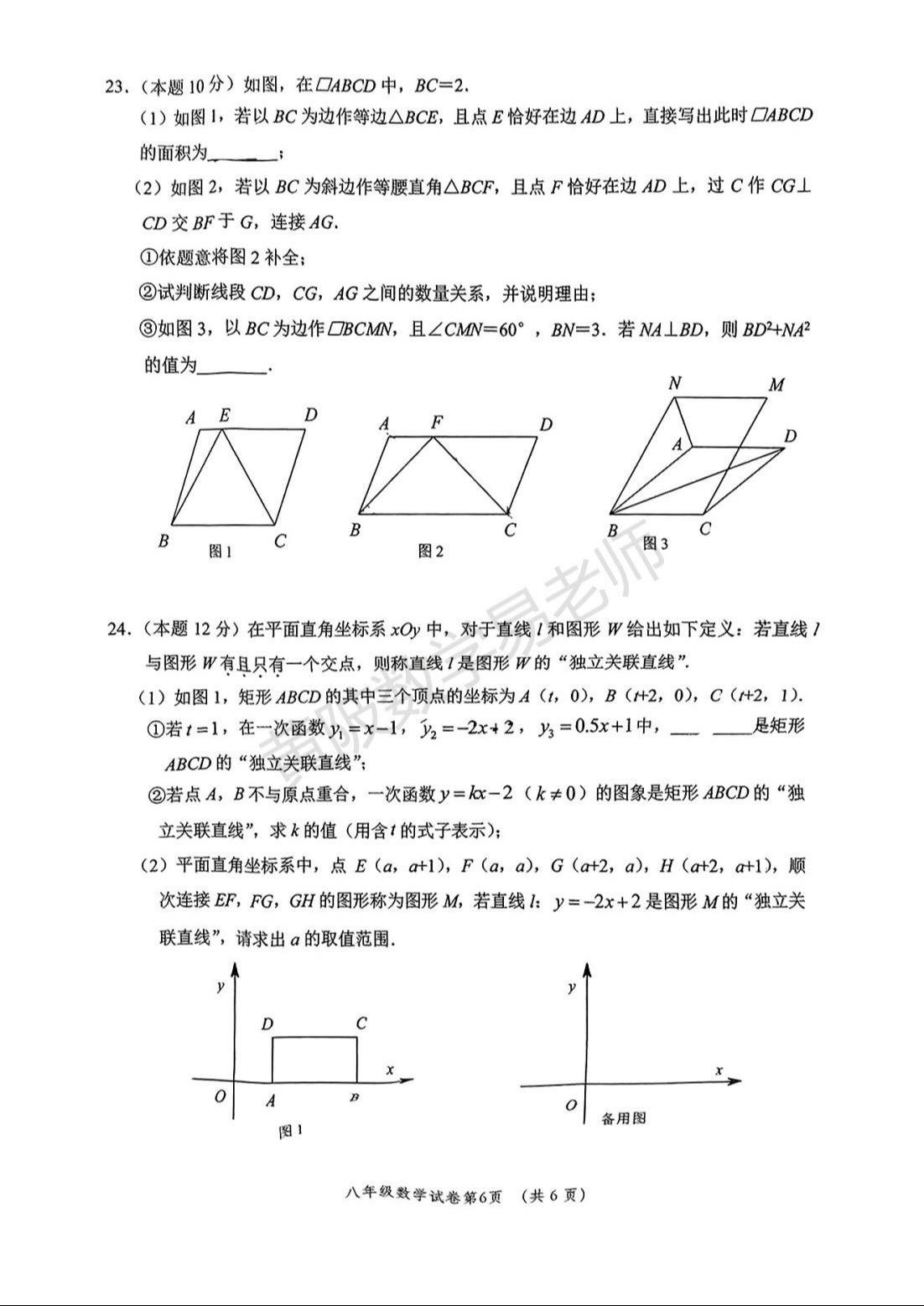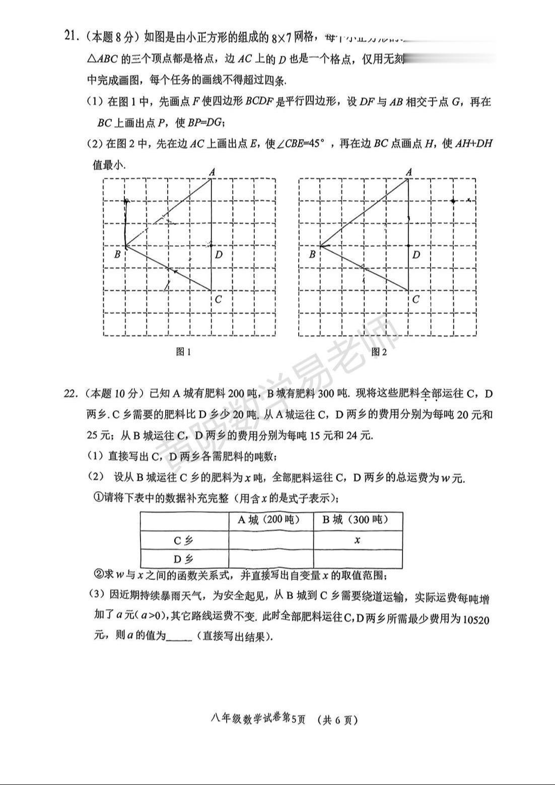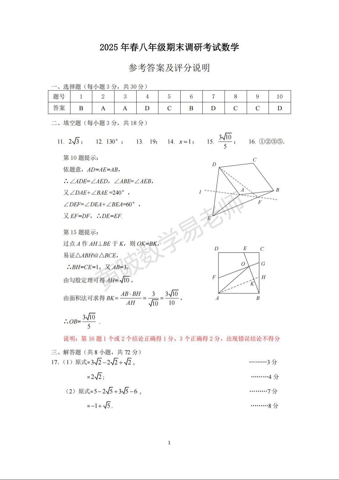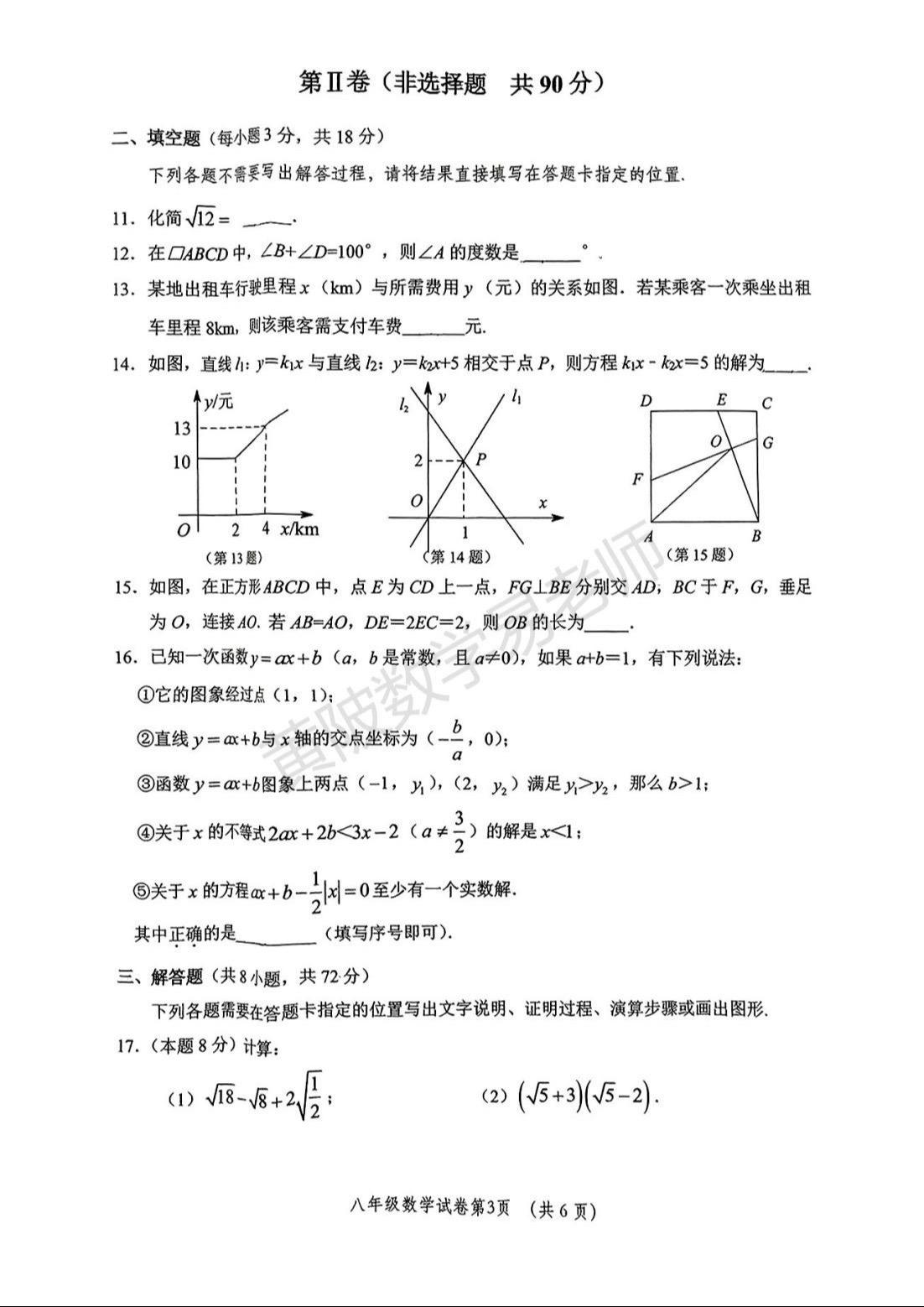 2025年黄陂区八下数学期末卷及答案。八下数学