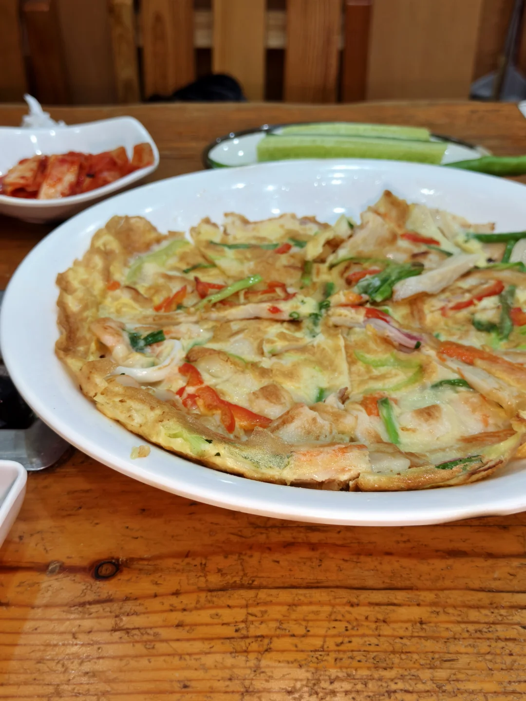 最近吃了这家真利味脊骨汤 海鲜饼很好吃,用料很足,软硬也适中 脊骨汤分量挺大的,我和朋友两个女生,最后没有全吃完。酸辣口味,比较开胃,里面蔬菜也很多,感觉很健康,肉也大多偏瘦肉,适合我这种不爱油腻的,套餐里面还有小菜和饮料