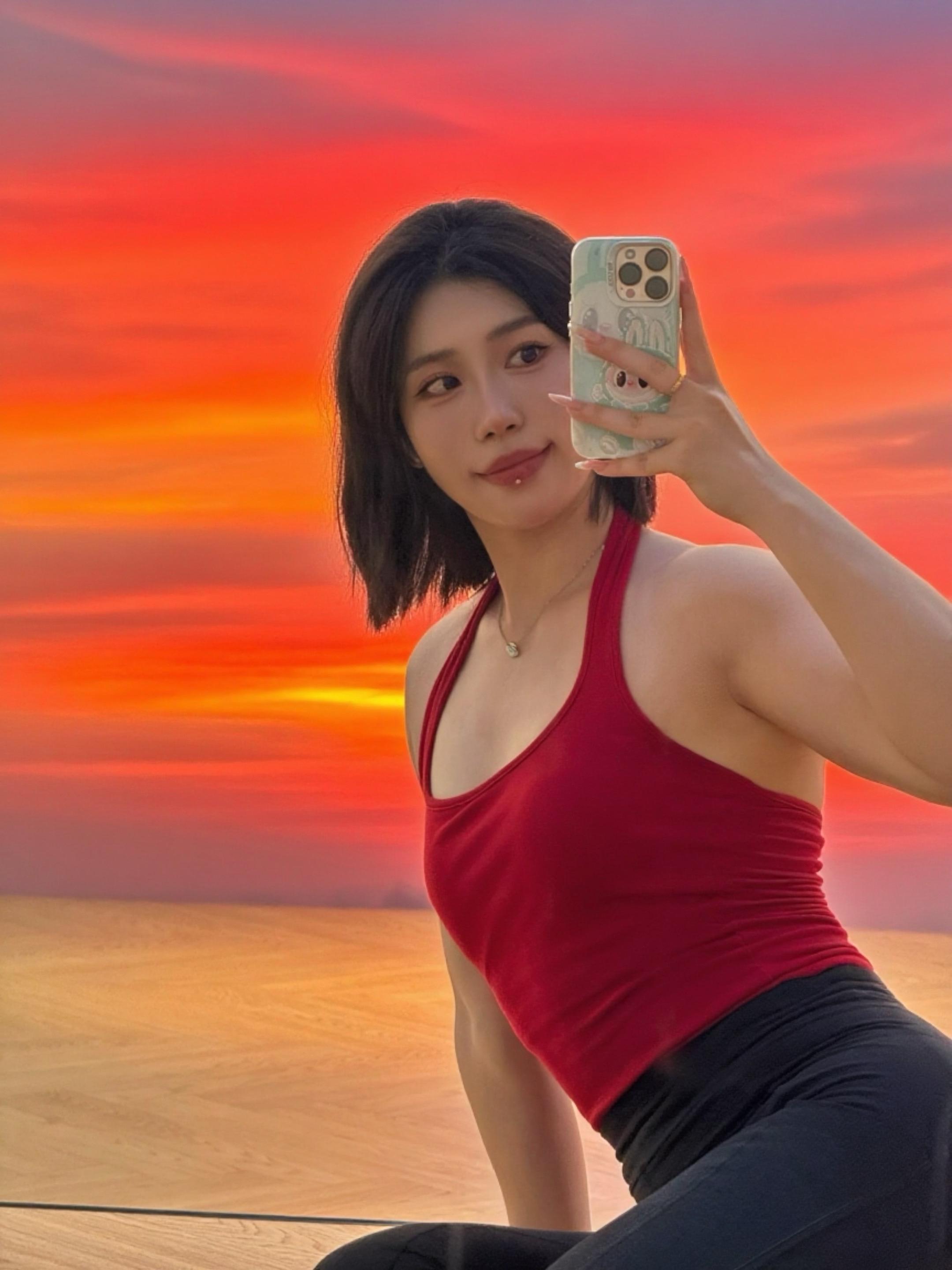 腰臀比 对镜拍 腰臀比 健身女孩多巴胺运动日常