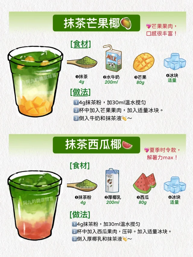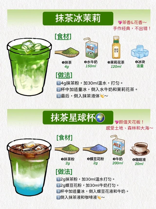 最后提醒下哦,抹茶本身偏凉性,并且含咖啡因,喝的时候注意【适量】哦~💖
