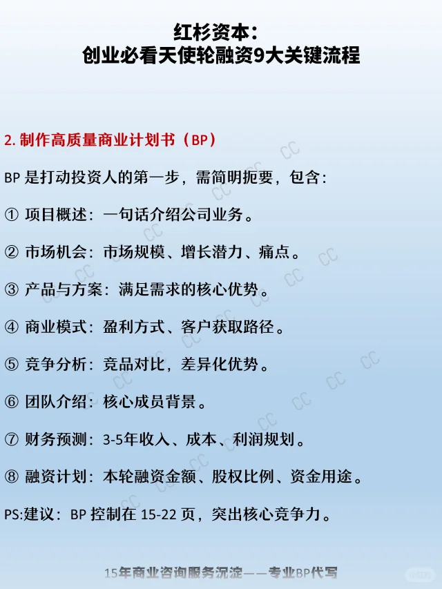 BP是打动投资人的关键,需简明扼要,突出核心竞争力和市场潜力。