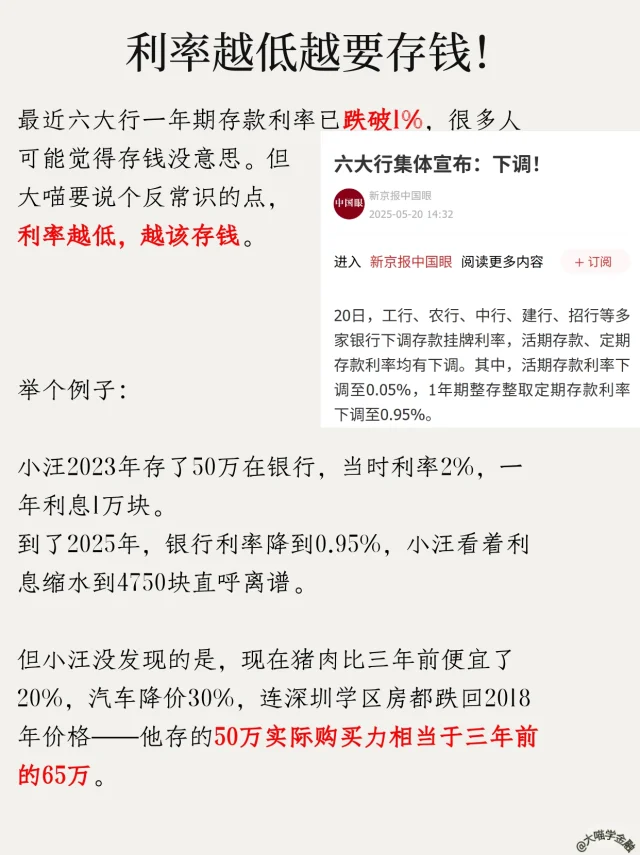 利率 存款 银行 财经 经济 理财 小白理财 财经干货
