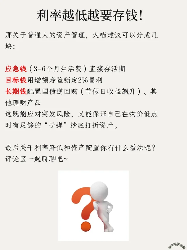 1⃣应急钱👉活期存款(3-6个月生活费)