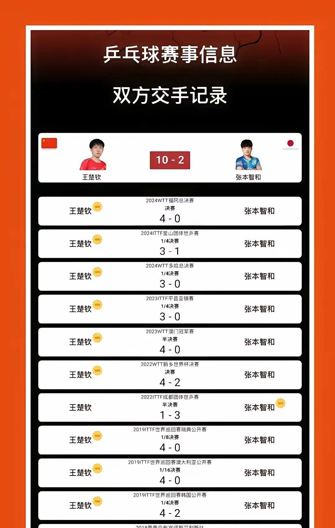 明天的男单决赛,将迎来国乒球迷喜闻乐见的局面,张本打败了所有人,奔向王楚钦,然后
