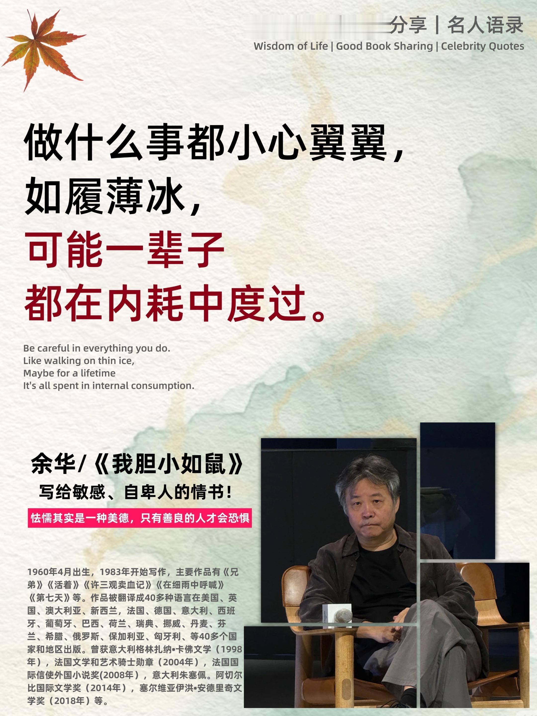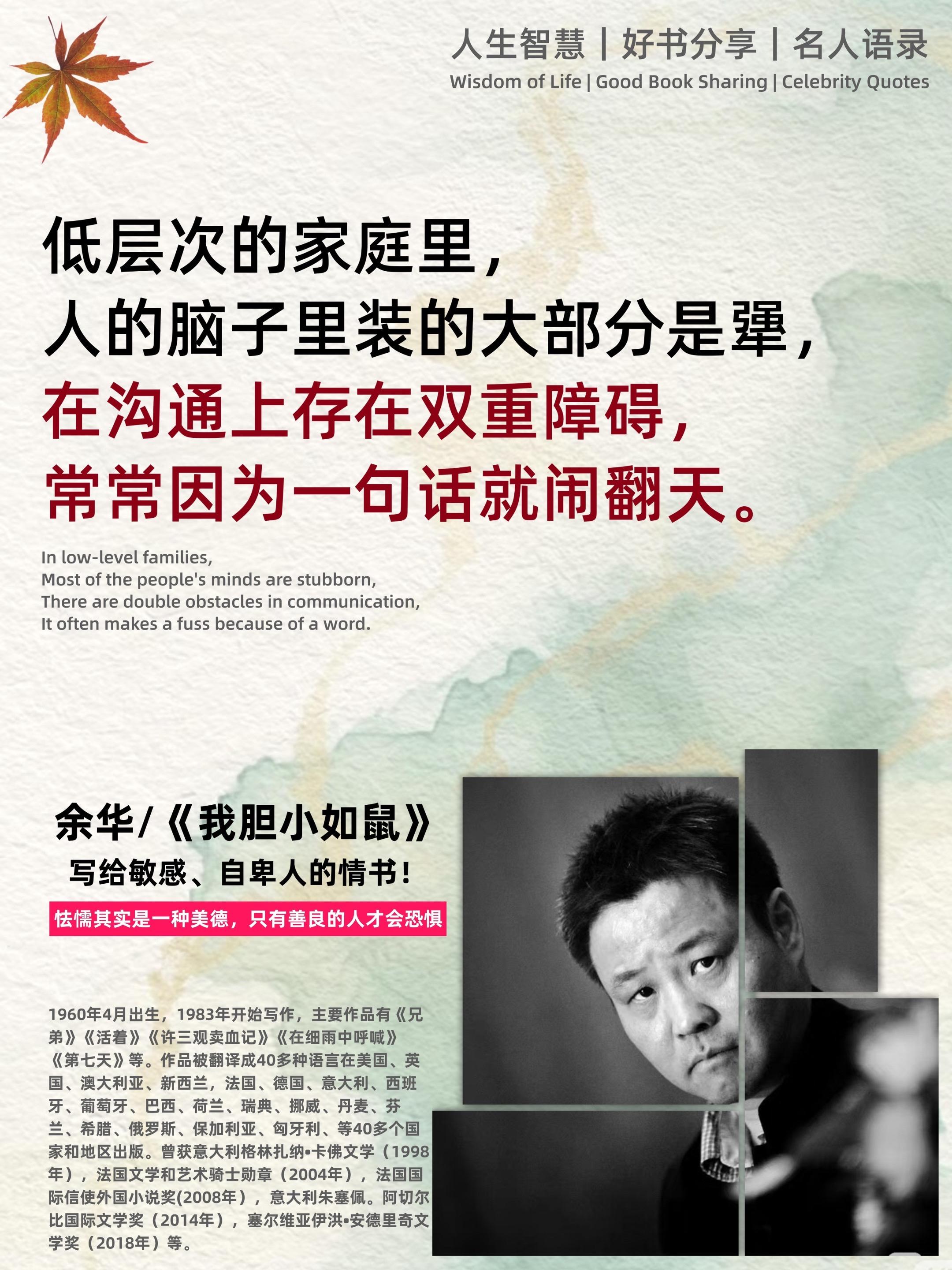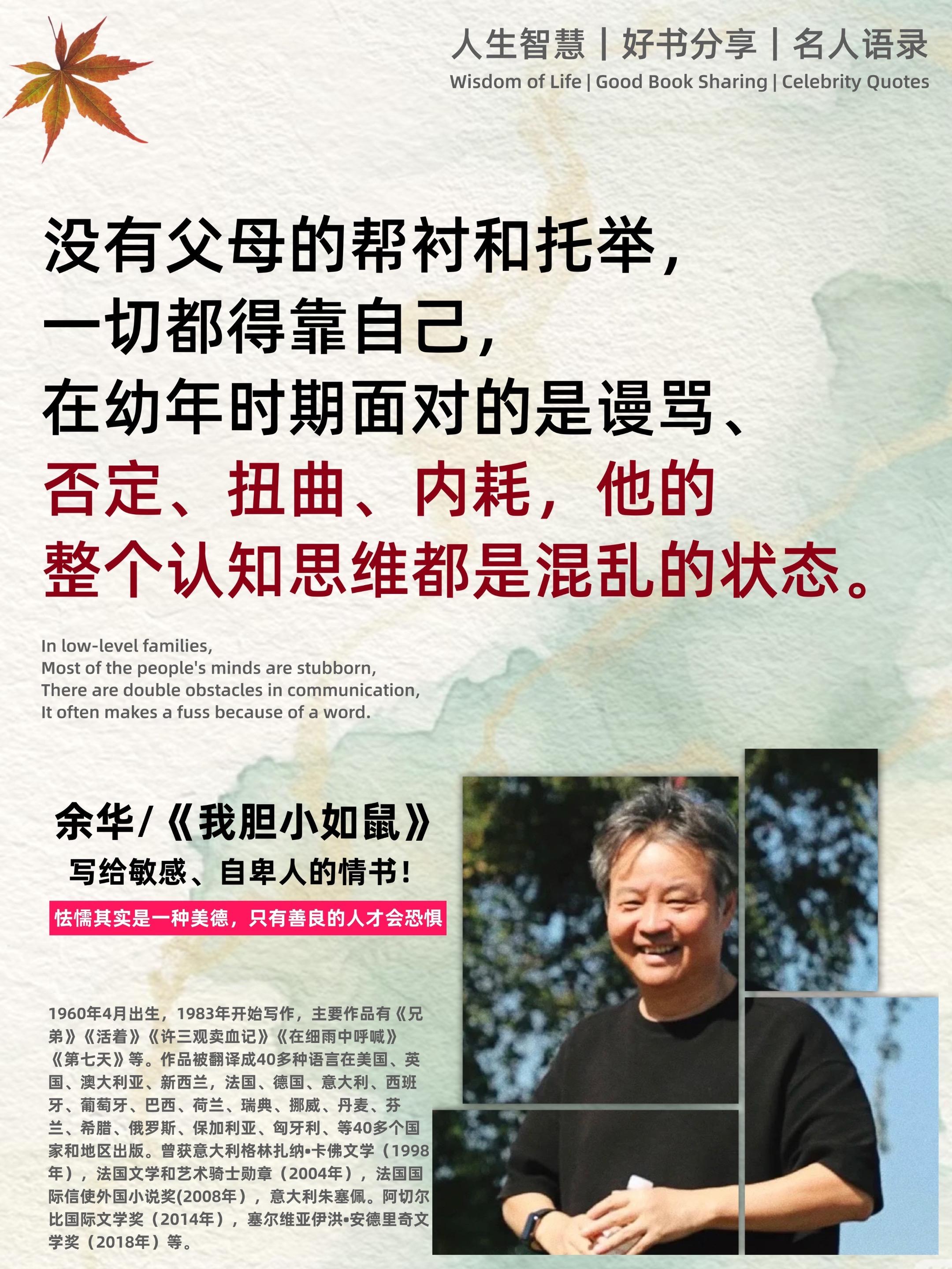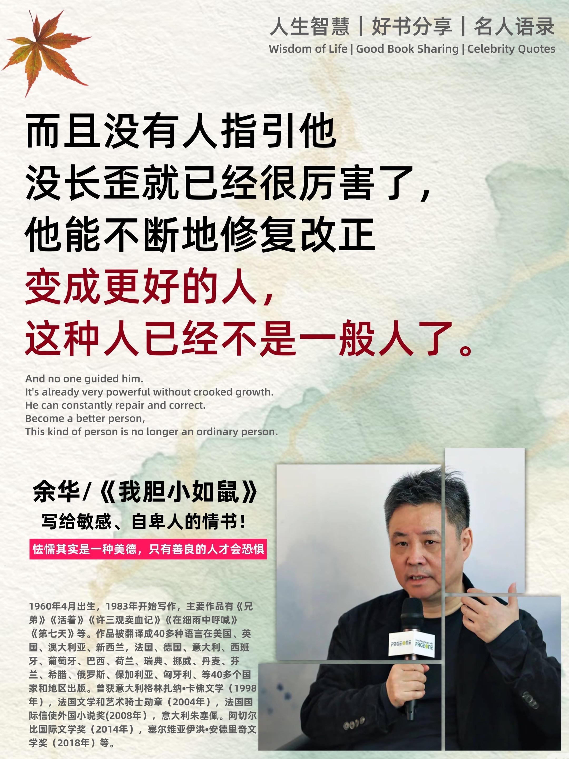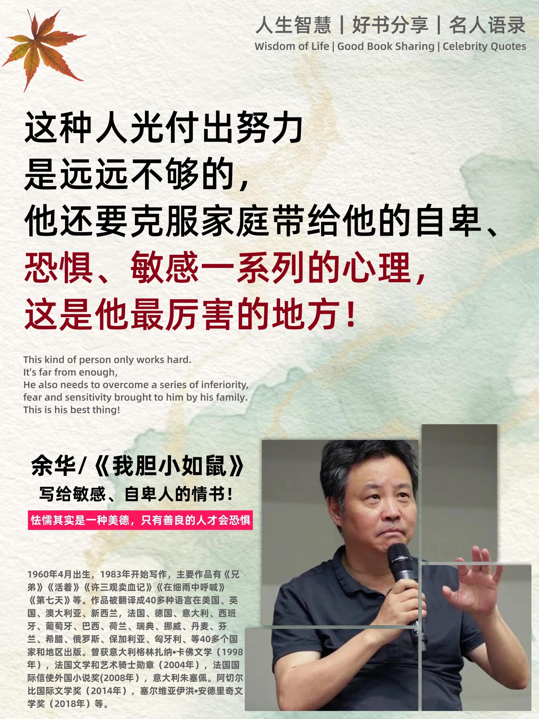 不愧是余华老师的顶级文笔。-余华老师在新书《我胆小如鼠》中无比真诚的...