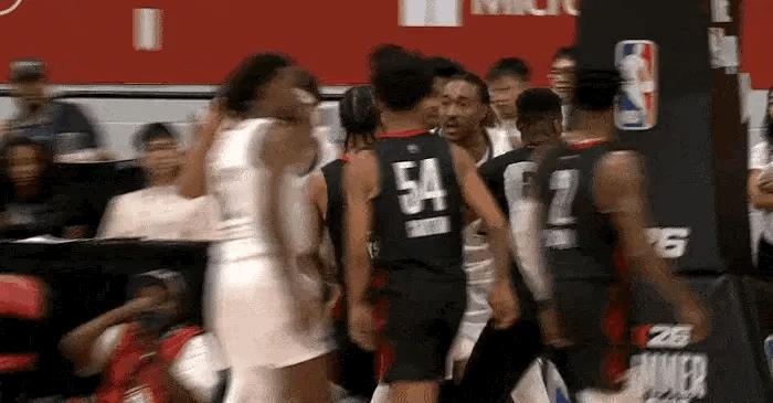杨瀚森:阿西,我想起身帮你出头,奈何助教不让我去 在开拓者与鹈鹕的夏季联赛第四节比赛中段,西索科先是与费尔斯发生摩擦,正在互喷的时候,费尔斯队友霍格德跑过来一把将西索科给推倒在地,随后双方爆发小规模冲突。而坐在替补席的杨瀚森见状马上起身准备为队友出头,结果助教一把将小杨按了回去,让他冷静一些