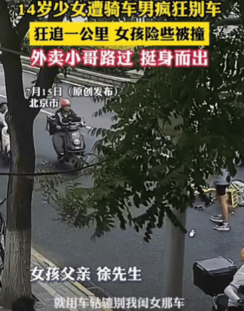 “太坏了!”北京,14岁女孩骑自行车出行,不料,竟遭骑车男疯狂别车,狂追一公里,女孩险些被出租车撞,虽然女孩尽力躲避,但还是被男子拽倒在地,随即对女孩破口大骂,关键时刻,路过的外卖小哥挺身而出,呵斥男子:你赶紧走,不然我报警了!男子听到后,转身就跑了!