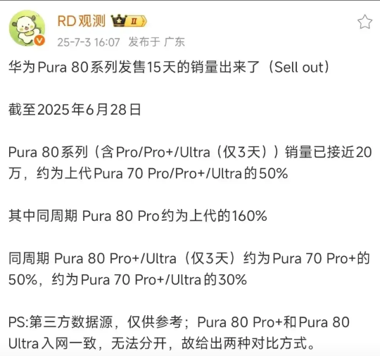 华为“不行了?” Pura 80系列卖不动? 目前给出的成绩还是20万, 不过,要说为什么上不来,原因肯定不是因为比不过iphone,也不是因为被安卓抢了份额, 而是因为被小胖子Pura X抢了份额!