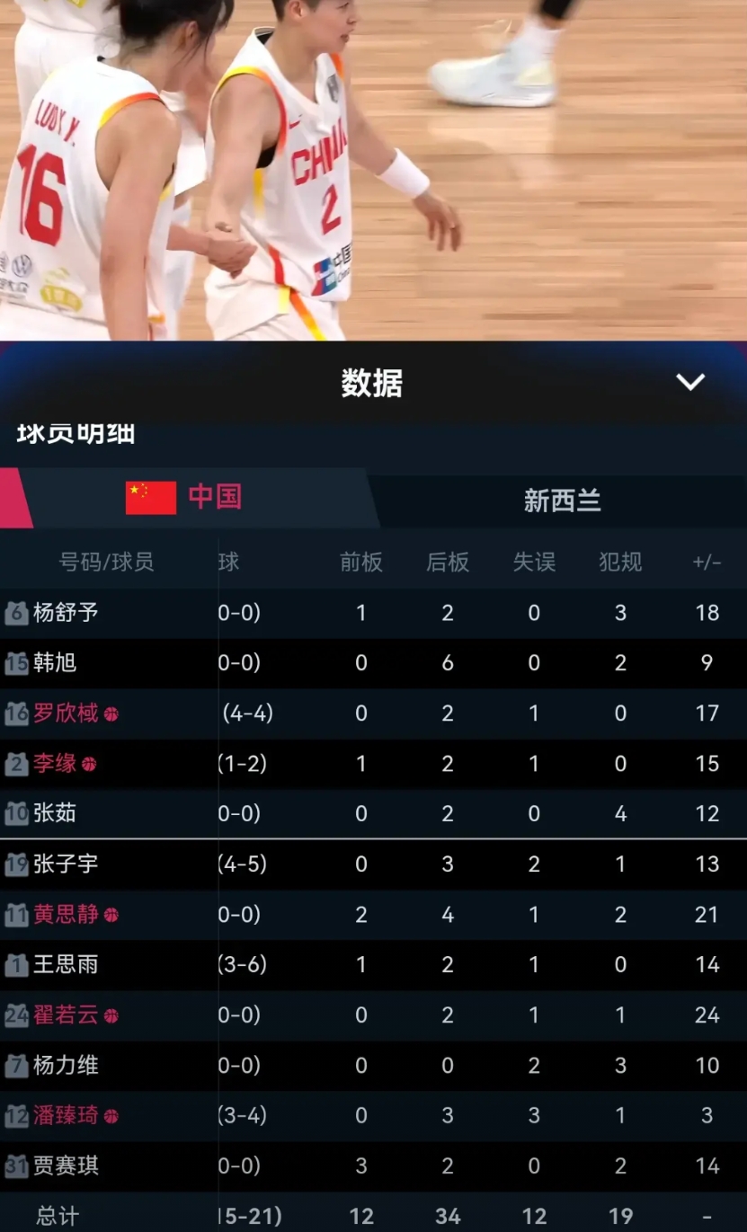 翟若云得分不高,为啥正负值最高?昨天晚上中国女篮以85:51大胜新西兰,以三战全