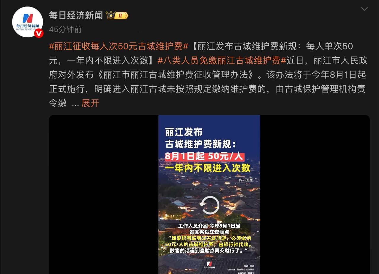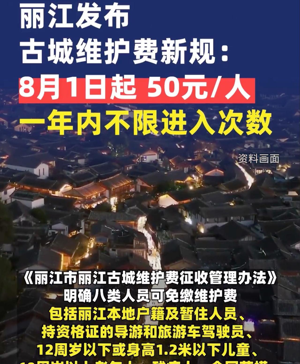 丽江古城要收费了,看来以后去丽江要多一份支出了。据多家媒体报道,从今年8月1日丽江古城开始收取50元/人的古城维护费,一年以内可以不限次数进入。去过丽江几次,主要感觉氛围不错,本来想去拍摄一些照片,但每次去都只顾着玩儿了,把拍照忘得干干净净。这个规定对于经常去丽江的人几乎没啥影响,但对于普通游客来说影响还是很大的。估计也有部分游客会因此而选择不进入古城吧,所以其客流量应该也会受到影响。早些年某著名古镇也是觉得自己很行,开始收门票,结果游客选择用钱包投票。所以,真不知道为什么丽江古镇也要开始收费,每年那么多游客带来的收益还不足以支撑古城维护吗?里面那些买东西的、餐饮的、摄影的商家们估计现在心里阴影面积挺大的! #夏日生活打卡季节# #我的宝藏兴趣# #综合摄影#
