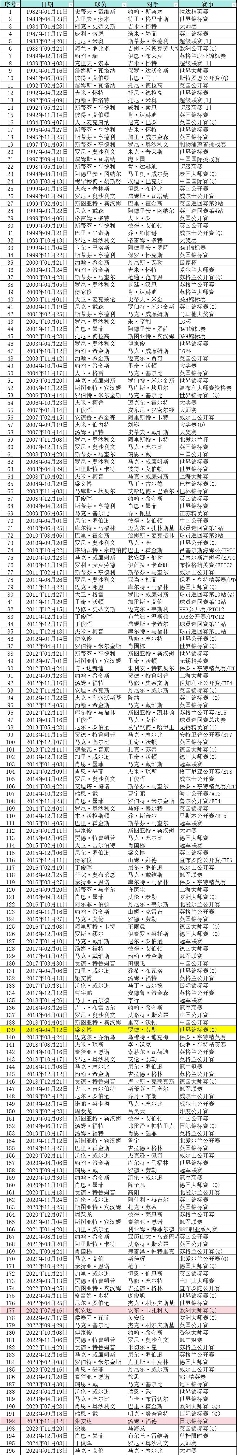范争一打出单杆147满分杆,创多项记录! 今日凌晨范争一vs徐思的比赛中,第二局打出单杆147满分杆! 1. 成为第38位打出2杆以上147球员! 2. 本赛季第一杆单杆147! 3. 个人第二杆单杆147!首杆在去年9月英格兰公开赛第二轮比赛中打出的。 4. 这也是斯诺克历史官方第218杆单杆147! 斯诺克历史218杆的147全部记录,参见附图表! #2025斯诺克冠军联赛# #范争一# #欧洲大师赛:范争一胜奥沙利文夺冠#