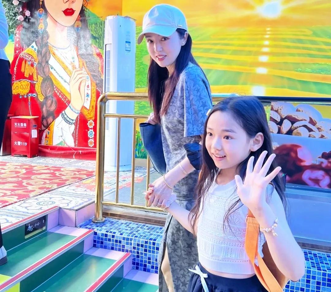 董璇婚后带女儿去新疆大巴扎玩,好闺蜜佟丽娅也在!小酒窝真漂亮,这小女孩是挑着爸妈