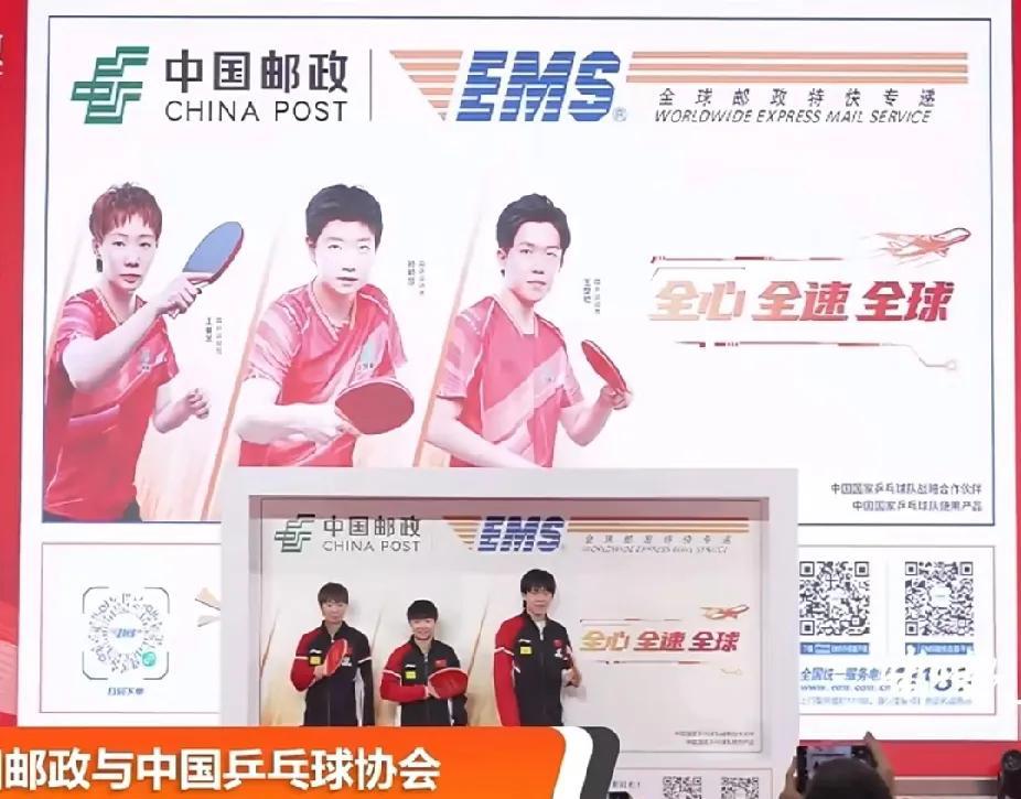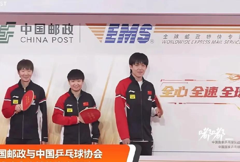 国乒联动邮政现场太欢乐!王楚钦狂扇球拍,仨人pose笑翻全场 国乒营业永远这么鲜