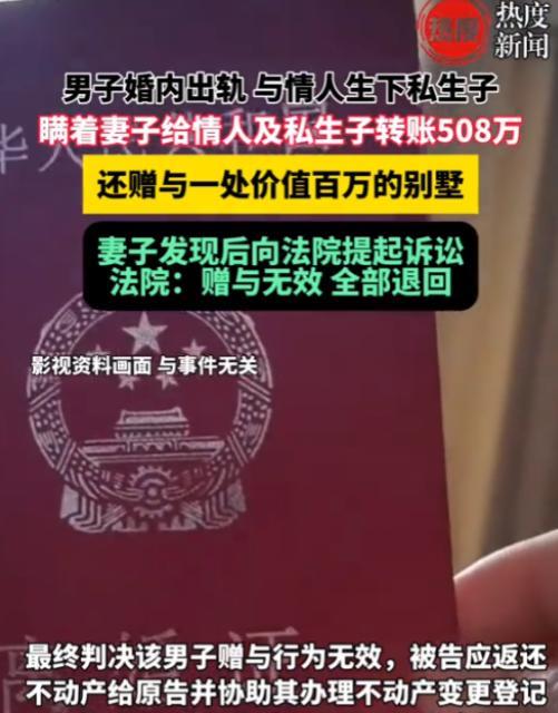 “太离谱了!”2025年7月,广东中山,一男子婚内出轨,还与情人生下私生子,瞒着妻子给情人及私生子转账508万元,还赠与一套价值百万的别墅,妻子发现后,向法院提出诉讼,法院:赠与无效,全部退回!网友:判的太好了! "她怎么会不同意?这些年我在外面打拼,不都是为了这个家吗?" 广东中山的陈先生(化名)在法庭上情绪激动地辩解着,然而坐在原告席上的妻子李女士(化名)眼中只剩下冰冷。 这起震惊当地的案件要从2023年说起,李女士偶然发现丈夫银行账户出现异常,几年间竟有超过500万元的大额转账记录。 起初她以为是生意往来,直到某天接到一个陌生电话,对方自称是物业公司,询问陈先生名下那套别墅的物业费问题。 李女士当时就蒙了家里什么时候多了套别墅?顺着这条线索深挖下去,一个让她崩溃的真相浮出水面,原来陈先生早在2019年就与一名姓黄的女子保持不正当关系,不仅如此两人还育有一个私生子。 更让李女士愤怒的是,陈先生瞒着她将夫妻共同财产大手笔赠与情人和私生子,除了那套价值数百万的别墅,还有整整508万元的现金转账,这些钱原本是两人多年打拼积攒的家底,是准备给孩子留学和养老用的。 李女士回忆起发现真相那晚,她整夜未眠看着身边熟睡的丈夫,这个共同生活了十几年的枕边人突然变得如此陌生,第二天她就开始收集证据,银行流水、房产证明、转账记录,每一份材料都像一把刀子扎在心上。 2024年初李女士正式向中山市第一人民法院提起诉讼,要求确认丈夫的赠与行为无效,追回全部财产。 庭审现场陈先生辩称这是对孩子的抚养费,是父亲应尽的责任,然而法官当场指出508万元的巨额转账远远超出正常抚养费标准,而别墅更是与抚养无关。 法院经审理认为,陈先生在婚姻关系存续期间,未经妻子同意擅自处分夫妻共同财产,且赠与对象是婚外情人及私生子,这种行为严重违背了公序良俗原则。 根据相关法律规定,夫妻一方对共同财产的处分需要征得另一方同意否则构成无权处分。 最终法院判决陈先生的赠与行为全部无效,黄某应当返还别墅并协助办理产权变更登记,同时返还508万元本金及相应利息,二审法院维持了原判这个结果让李女士稍感欣慰。 判决一出,网友们纷纷拍手叫好。有人评论说:"活该!出轨还想转移财产,真当法律是摆设?" 也有人感慨:"可怜了原配,辛苦半辈子,差点被掏空了家底。"还有网友犀利地指出:"这种男人就该让他人财两空,看他以后还敢不敢!" 俗话说"纸包不住火",陈先生以为自己的秘密天衣无缝,却不知每一笔转账都留下了证据,而李女士的勇敢维权也给所有人上了一课:面对背叛,不要沉默要拿起法律武器保护自己。 如今这起案件已经尘埃落定,但它带来的警示意义却值得每个人深思,婚姻需要忠诚,更需要责任,那些试图脚踏两只船还想掏空家产的人,终将为自己的行为付出代价。 那么您怎么看待这件事呢? 信息来源:《男子婚内出轨与情人生下私生子,瞒着妻子给情人及私生子转账508万,还赠与一处价值百万的别墅,妻子发现后向法院提起诉讼,法院:赠与无效,全部退回》热度新闻