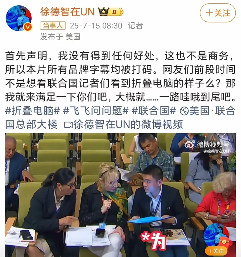 央妈这次超级给力,直刚“黑子”,直接把联合国中国记者徐德智发的品牌字幕打码的码直