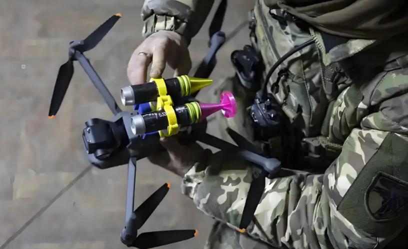 但也别高看这玩意,说穿了就是个组装货,“中国零部件+本土改装”。比如把DJ的Mavic加装热成像仪和AI识别芯片,用3D打印支架,将反坦克地雷绑在DJ无人机下面,就诞生了“贫民版巡航导弹”,创下单周摧毁俄军30辆坦克的纪录。