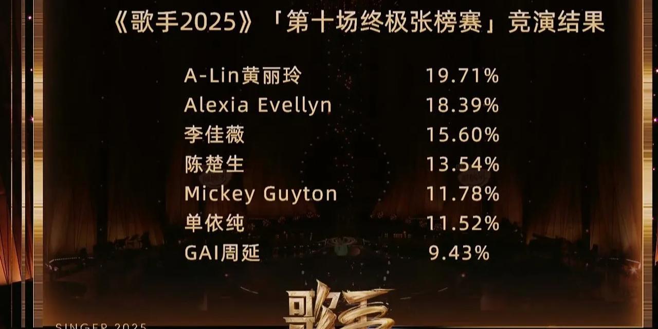 《歌手2025》第10期:A-Lin夺冠,GAI遗憾出局! 不过,GAI周延被淘