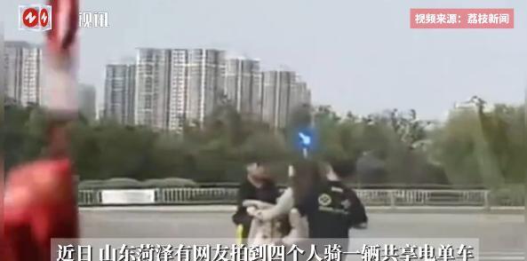 “胆大包天!”2025年7月,山东菏泽,一年轻女子骑一辆共享电单车,然而,她却带着3个人!其中一人坐在车筐,一人坐脚踏板,另外一人坐在女子后面,随后还闯了红灯!网友:防不胜防! 那天下午,有路人正等着过马路,就瞧见后面骑过来一辆共享电单车,本来这电单车就不大,可上面的人着实不少,骑车的是个二十多岁的姑娘,车筐里蜷着个小伙子,看着也就十六七,两只小手紧紧抓着筐边。 脚踏板上还蹲了个小姑娘,身子恨不得贴到车把上,车后座呢,还坐着个年轻男子,一只手扶着自己的腿,另一只手还得扶着车座。 这四人挤在一辆小电单车上,看着就晃晃悠悠的,等红灯的时候,旁边的司机都忍不住按喇叭提醒,可骑车的姑娘像没听见似的,红灯刚亮,她居然一拧电门就冲了过去,吓得横向过来的一辆轿车赶紧踩刹车。 这惊险的一幕被旁边的人拍了下来,有网友说:“这是拿命开玩笑啊,共享电单车本来就只能一个人骑,这一下子坐4个,车筐哪禁得住大人的重量,万一摔了,谁受得了?” 也有人说:“现在的年轻人真是胆子大,红灯也敢闯,不光害自己,还容易连累别人。”常骑车的人都知道,共享电单车设计的时候就考虑了安全,规定只能一人骑行。 而且,车筐是放包用的,哪能坐人,脚踏板就那么点地方,蹲个人脚都没处放,稍微一晃就得摔下来,更别说闯红灯了,马路上车来车往的,万一出事就是大事,甚至女子还没有戴头盔。 交警部门也说了,这种行为不光违反交通规则,还特别危险,一旦查到肯定要处罚,说到底,不管是骑车还是走路,守规矩才能保安全,可不能图一时方便拿性命当儿戏啊。 信息来源:《4人骑一辆共享电单车“一人坐车筐,一个人坐脚踏板,一个人坐后座,还闯红灯?”交警回应》掌闻视讯