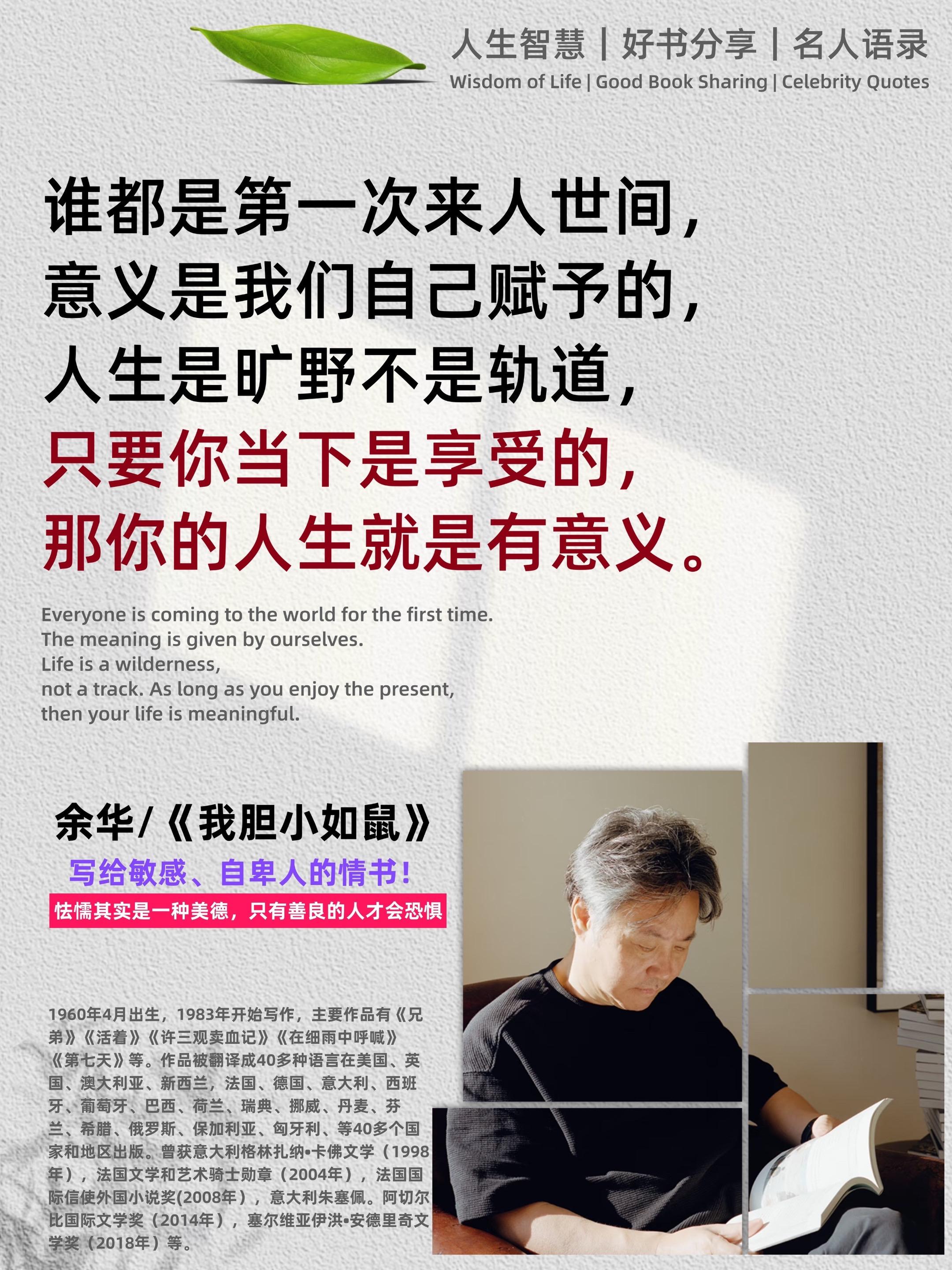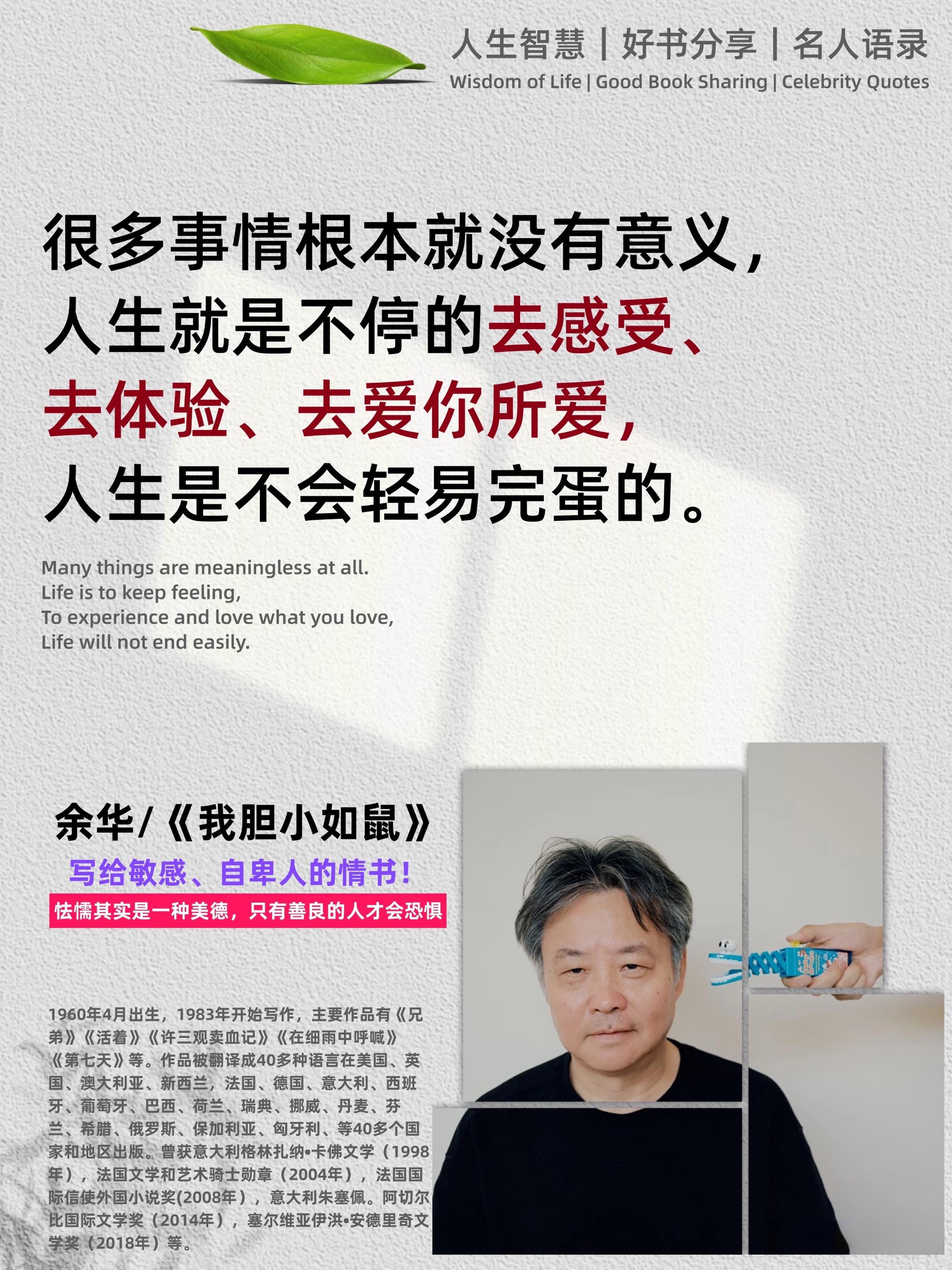 不愧是余华的顶级文笔。不愧是余华老师的顶级文笔!他在新书《我胆小如鼠》...