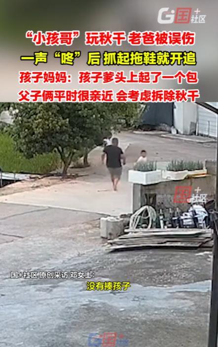 “冤不冤!”7月11日,浙江丽水,男孩在院子里玩秋千,不料,起身后,秋千由于惯性狠狠地砸到了身后的老爸,头被砸出一个大包!老爸当场暴走,抓起拖鞋就追男孩。网友:又一个小孩收获了完整的童年。 这男孩也就五六岁的样子,当时玩得正高兴,荡得老高,玩够了一蹦下来,光顾着转身想喊妈,压根没留意秋千还在来回晃,他爸那会儿正好躺在后面,结果躲闪不及,结结实实挨了一下。 老爸疼得“哎哟” 一声,他捂着脑袋蹲下来,好一会儿才缓过劲,一看脑门上鼓起个红通通的包,再瞅着旁边一脸懵的儿子,火气“噌”就上来了,顺手抄起墙边的拖鞋,追着男孩就绕着院子跑。 爸爸嘴里还念叨着:“让你玩,让你不看路!”男孩吓懵了,一边跑一边哭,喊着不是故意的,妈妈从屋里出来看到这场景,赶紧把儿子拉住:“孩子也不是故意的,你这当爹的跟娃较啥劲。” 这时候老爸气也消了点,摸摸自己的包,又看看儿子哭红的脸,忍不住笑了,后来老爸说,当时一是疼得厉害,二是觉得又好气又好笑,那一下是真疼,但追过去的时候就没想真打。 男孩也乖乖过来给爸爸吹伤口,网友们看了这事儿,有人说:“这就是典型的父爱如山体滑坡,前一秒还想揍,下一秒就心软”,还有人调侃:“这孩子算是体验了完整的童年,谁小时候没被爸妈追着打过啊。” 其实谁家带娃没出过这样的事,孩子皮起来没轻没重,家长难免有控制不住脾气的时候,但气头上的火来得快,消得也快,最后还是心疼占了上风。 信息来源:《7月11日,浙江丽水。“小孩哥”玩秋千,老爸被误伤。孩子妈妈:孩子爹头上起了一个包,因为是意外,所以没揍孩子。父子俩平时很亲近,会考虑拆除秋千。》国+社区