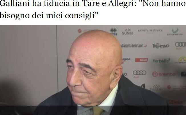 在联合慈善晚宴期间,加利亚尼接受了《全市场》采访,不仅谈及即将被美国集团收购的蒙扎,还提到了米兰: “我的心永远属于出生地蒙扎,以及我效力了31年的米兰。事实上,我在这里第一个拥抱的就是塔雷。” 被问及是否给塔雷提供了管理米兰的建议时,他表示:“我认为他和阿莱格里是米兰的合适搭档,他们不需要我的建议。”