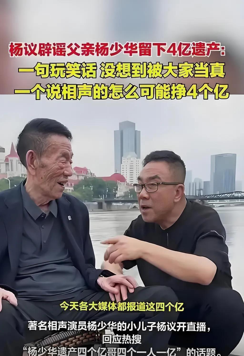 2025年7月18日,杨议针对“杨少华遗产4个亿,4个儿子每人分1亿”的传闻回应