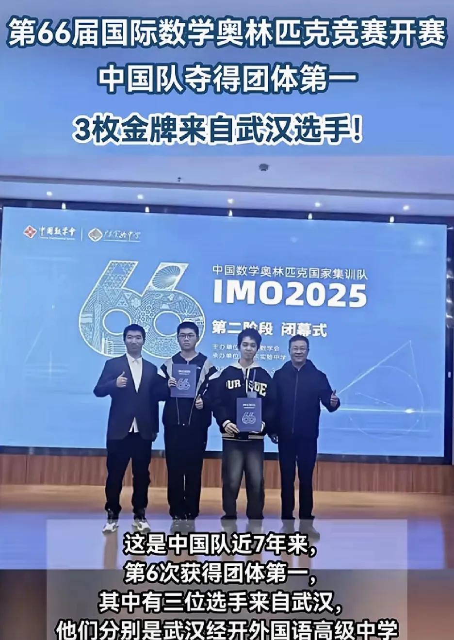 惟楚有才,还真没错,第66届国际数学奥林匹克竞赛,中国队夺得团体第一,6名参赛选