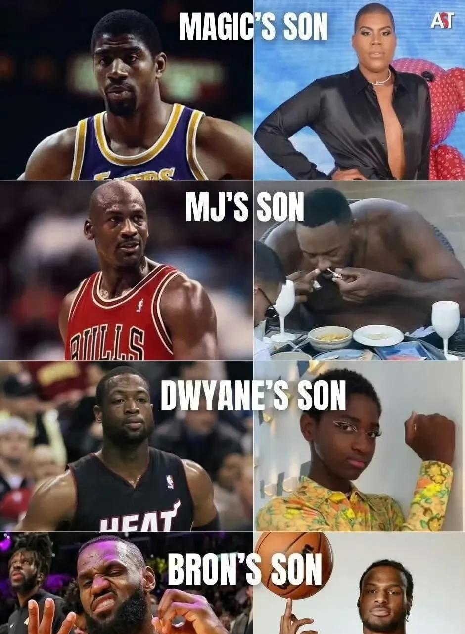 NBA超级球星的儿子,只有老詹的儿子最争气! 魔术师约翰逊的儿子:生儿育女! 迈