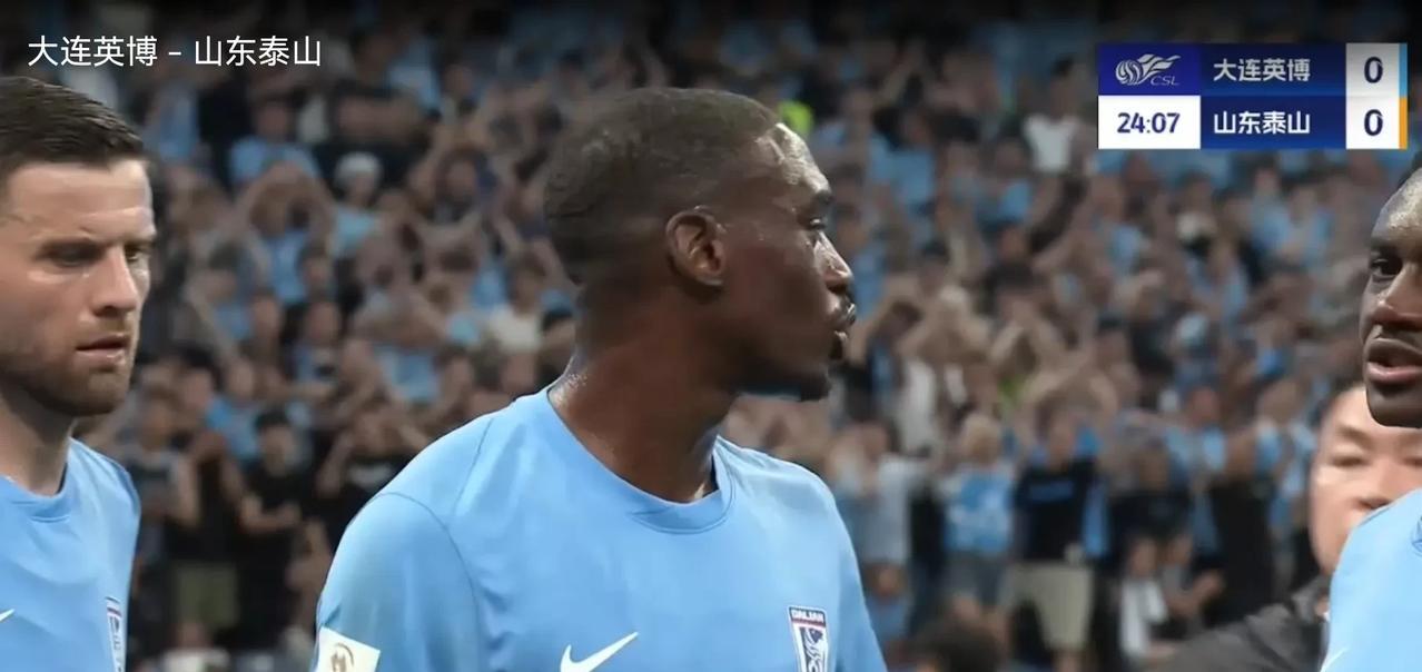 韩鹏也难救泰山,韩鹏首战就面临严峻考验,大连英博刘祝润进球啦!上半场大连英博1比