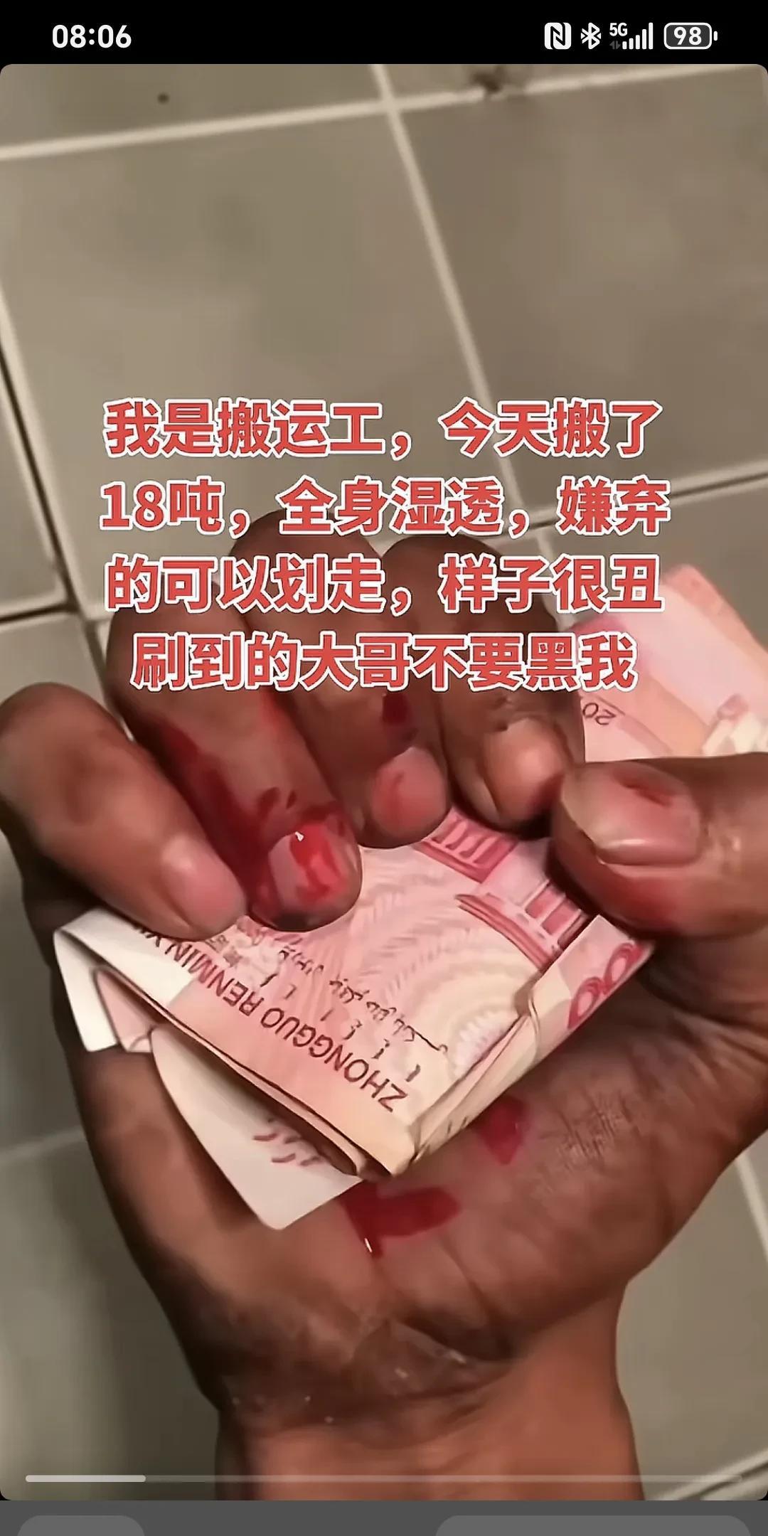 我是搬运工,今天搬了18吨,全身湿透,嫌弃的可以划走,样子很丑,刷到的大哥不要黑我~ 不是为了钱而生活,而是为了生活必须赚钱,不逼自己72变,谁能帮你扛下81难?七苦八难是生活,苦尽甘来是人生,加油! 美女用勤劳的双手挣出了钱,都是干净的,凭着自己本事挣钱最光荣,为美女点个赞,点个小爱心,好人一生平安,一定要善待自己! 给美女点个赞,太辛苦啦。生活不容易啊。人不要太累哦,要注意身体。健康才是钱哦。