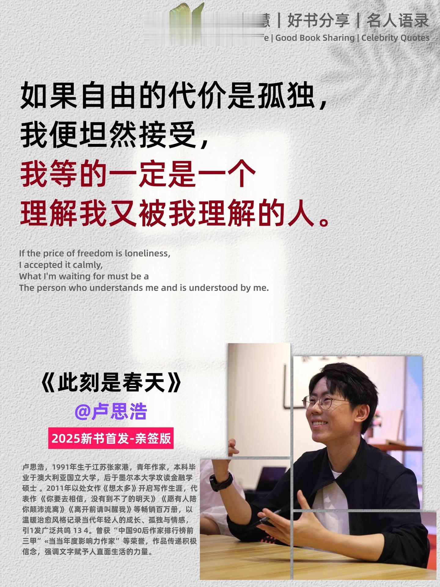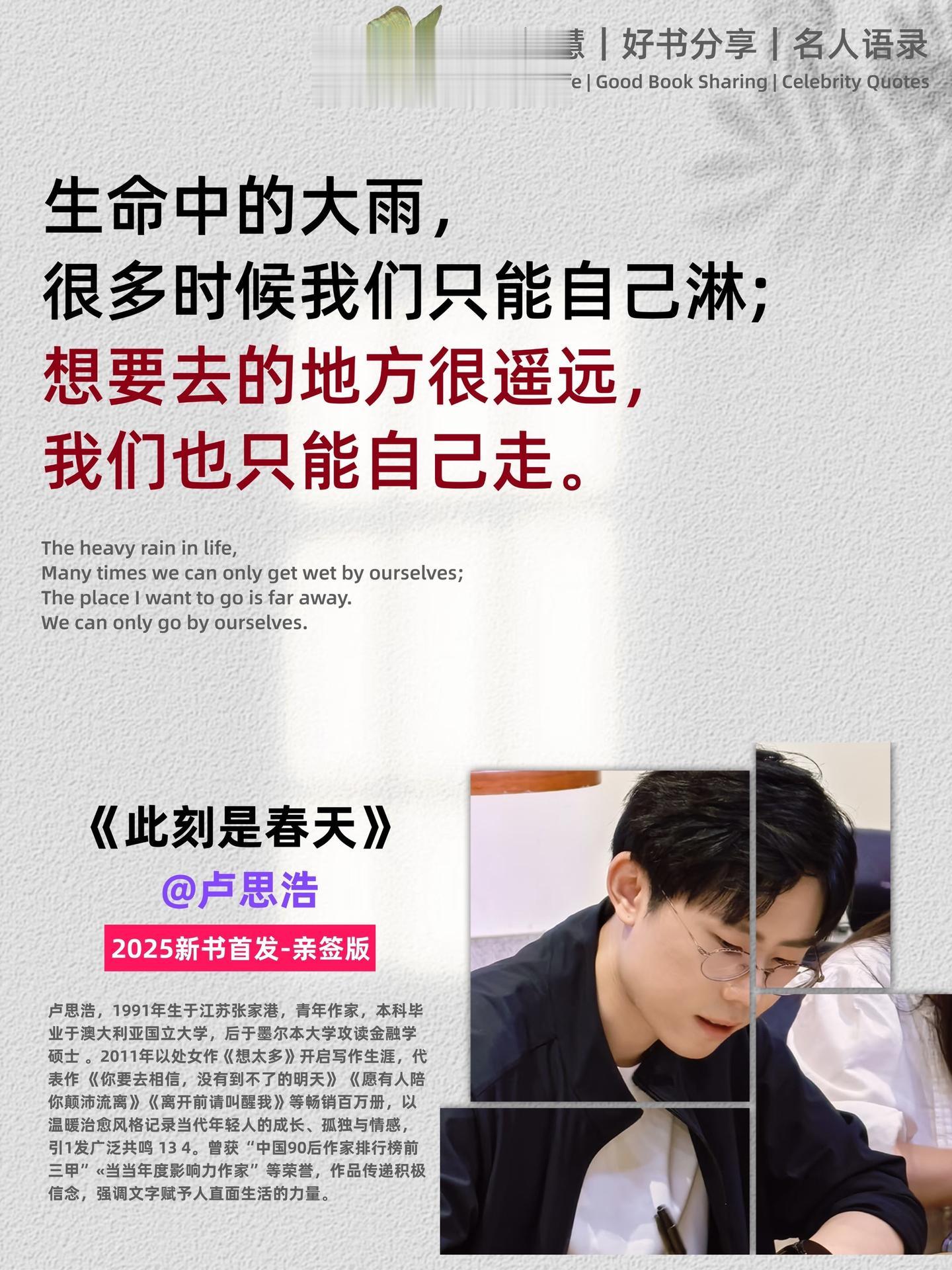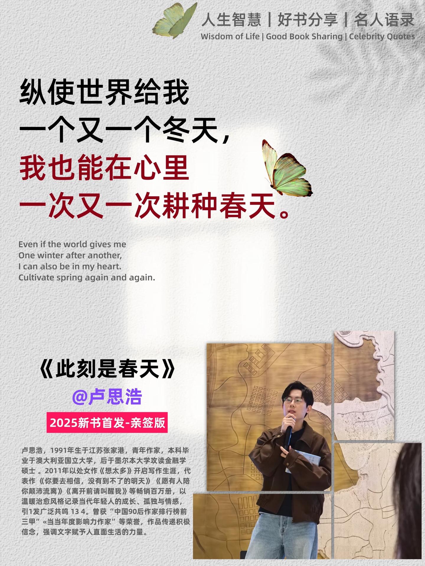 卢思浩新书首发!《此刻是春天》亲签版。一口气读完,灵魂仿佛被击中。低落...