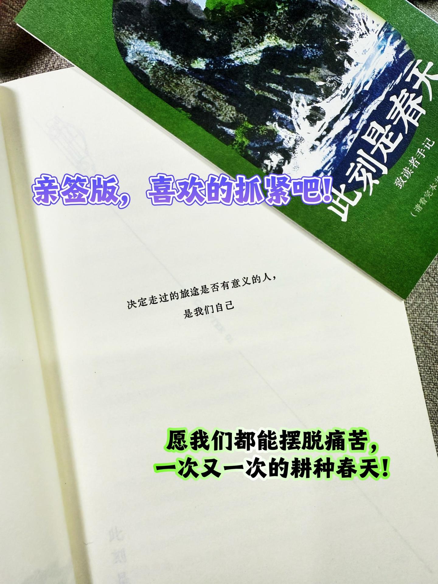 卢思浩新书首发!《此刻是春天》亲签版。一口气读完,灵魂仿佛被击中。低落的情绪仿佛被温柔托起。正如卢思浩所言:“一个人能把握住的每个此刻,都是将来回忆里的春天。”这本书讲述了普通人的爱恨别离、痛苦挣扎、迷茫与救赎,字里行间或多或少映照着自己的身影。阔别四年的新作,温暖依旧。愿我们都能卸下负累,一次次在心中耕种属于自己的春天。