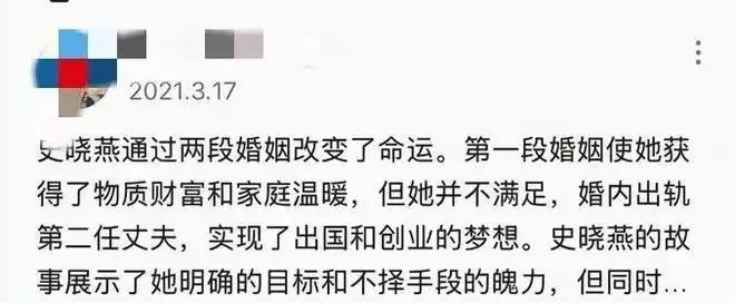 老宗家被网络吵翻天了,是是非非施幼珍,杜建英,宗馥莉几个女主愣是没出来说过一句话,始终沉默不语。可是杜建英的同学史小燕坐不住了,站出来公开指责宗大小姐独霸家产,高高在上,目中无人,情商低,没教养,又凶又恶,不给弟弟妹妹留后路……庆幸的是被网友送上了热搜,同时她的黑历史也被拔出来了,原来她也是婚内出轨,靠第二任丈夫实现了自己出国的梦想,站在她的角度,确实可以理解她的说词了,这波流量蹭的,不知道她同学杜建英是否会感激她,不过她也达到目的了,不费吹灰之力就把自己推销网络了,事后她解释说,她并不是支持小三,只是觉得宗馥莉不能树敌太多,毕竟娃哈哈的未来更重要,还问儿子,如果家里有类似的情况,儿子会不会分财产给弟弟妹妹,儿子的回答让她很满意,哈哈,那是不是她现在的老公找年轻的,生孩子,她也绝对的赞成和支持呢?
