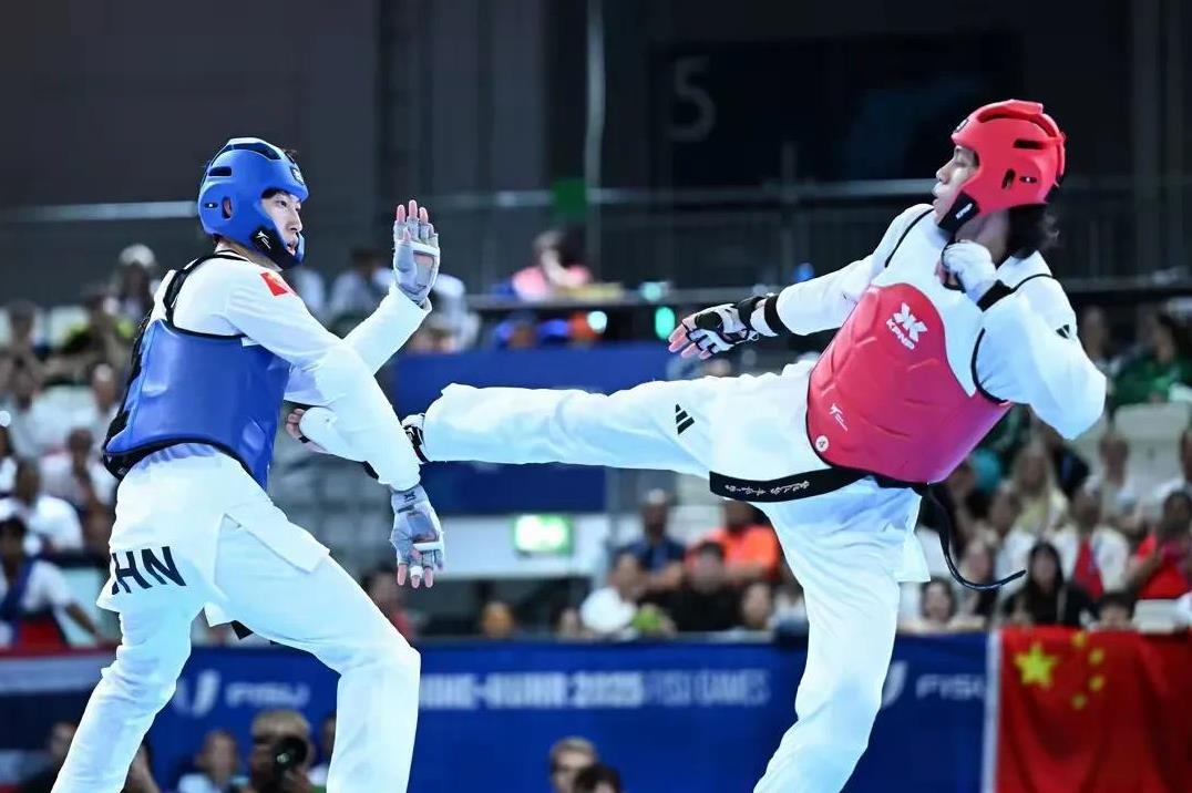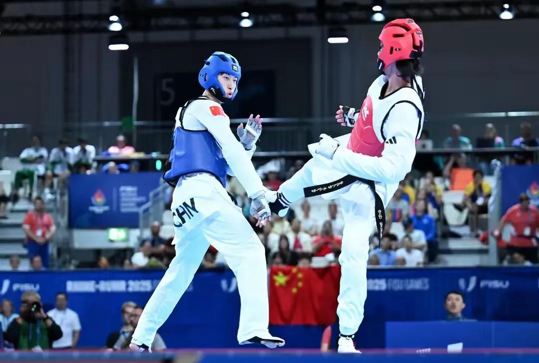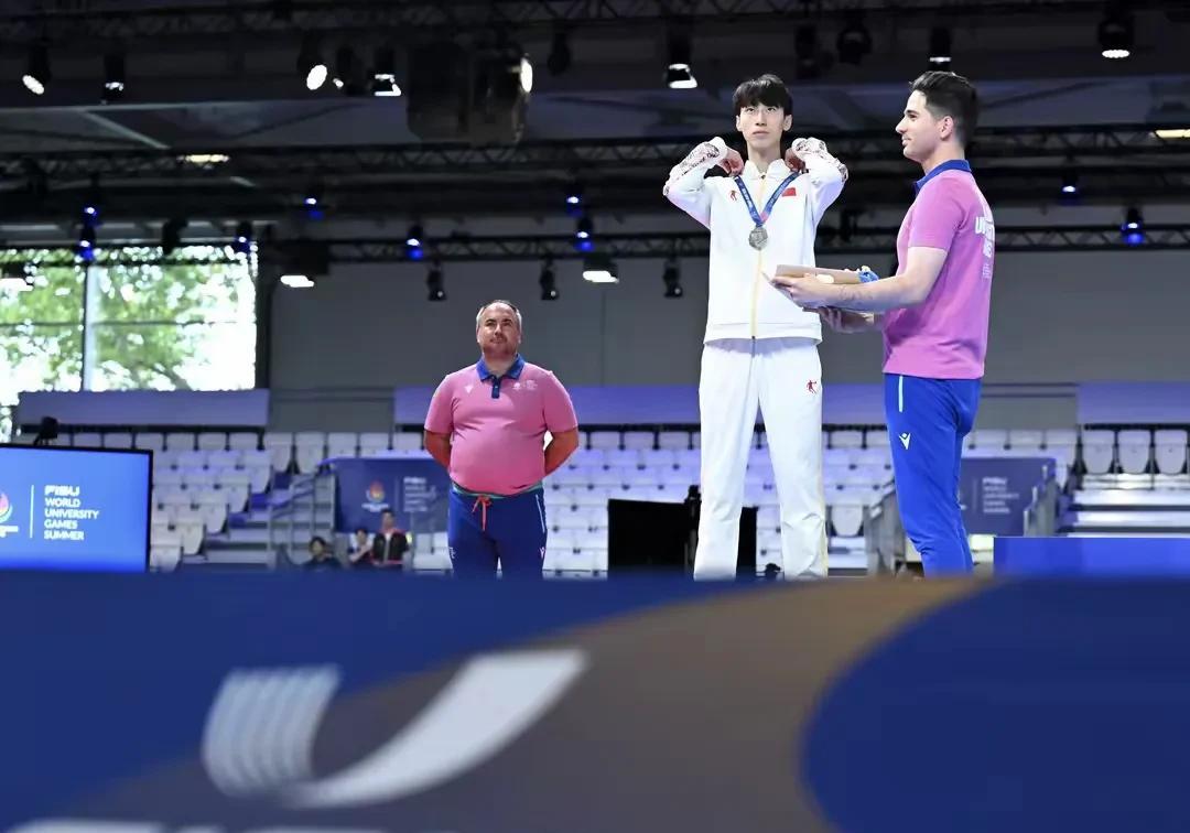 世界大学生夏季运动会跆拳道男子68公斤级决赛,奥运季军梁育帅不敌泰国选手班隆·杜丁当,收获银牌。