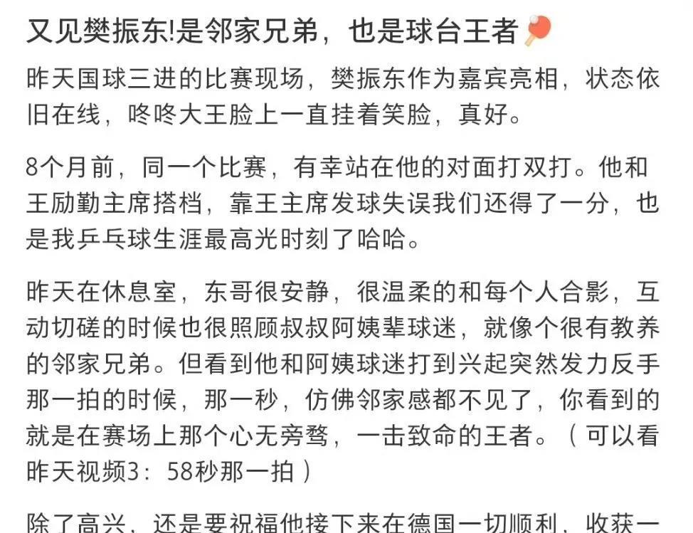 这么可爱的东东,谁能不喜欢呢? 上海“国球三进”活动,东东刚一现身就被领导拍着肩膀推到了大家面前。 看领导那笑得合不拢嘴的样子好像在说:“同志们,看看谁来了!” 东东一挥拍,大家都忍不住“咔咔咔”照相,唯恐落下精彩的一幕;东东赢了球,大家都不禁鼓掌叫好…… 可不是嘛,这面相一看就是国泰民安、风调雨顺的福相呢,哪个长辈不喜欢呢?