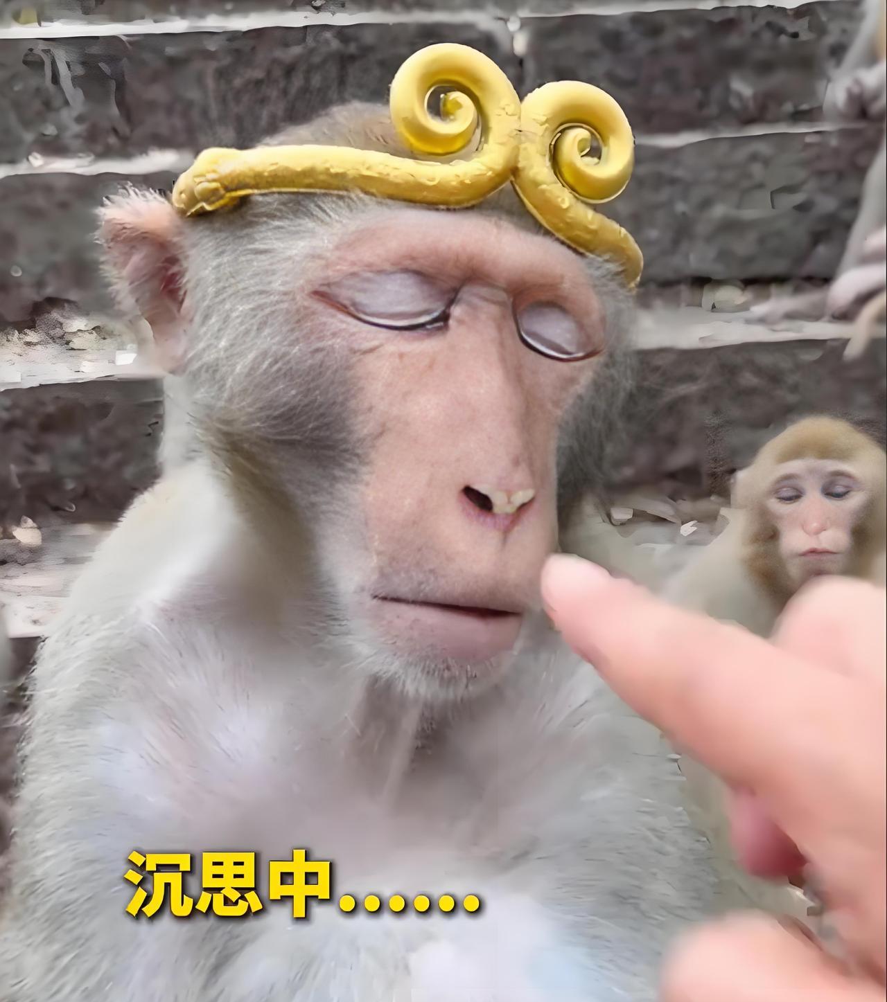 猴子戴上紧箍咒后几秒钟变成悟空转世,是不是黑悟空要拍电影了!有网友做了一个很有意思的实验,他拿了个紧箍咒戴在一只正在发呆的猴子脑袋上,然后让它闭上眼睛。于是有趣的一幕发生了,在镜头中这只猴子慢慢睁开眼睛,眼神从迷离到有所觉醒只花了几秒钟时间。以后如果要拍摄《黑神话》,强烈建议导演请这只猴子出马,那效果……
