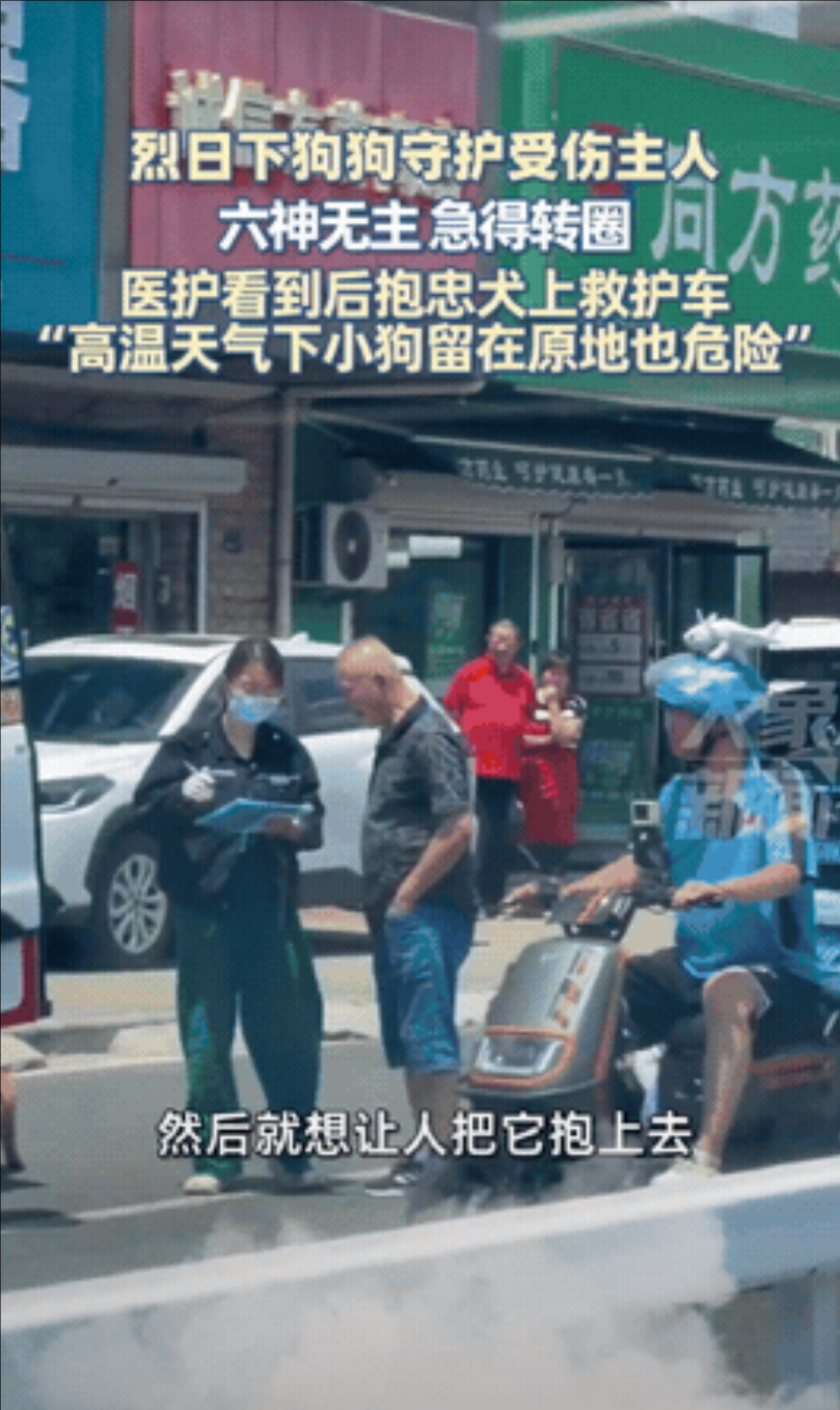 一名医护瞅它六神无主的模样,伸手一抄把它抱上车:“高温天留你在这儿,怕是要成烤狗了!”