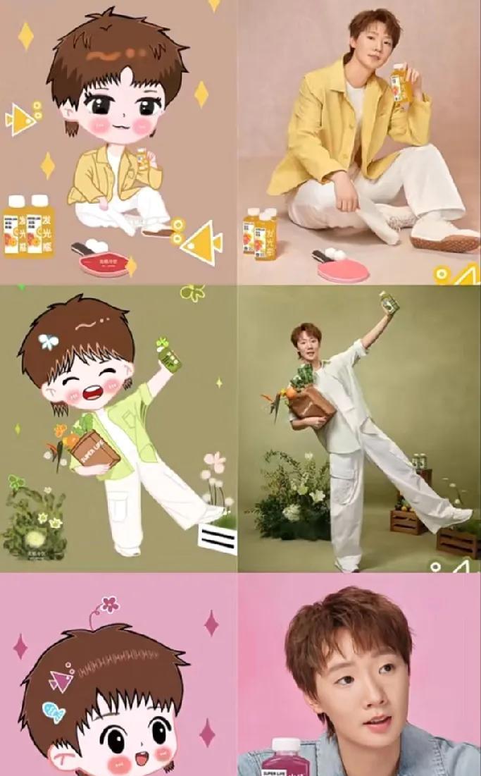 王曼昱最新代言光合植造SUPERLIFE果蔬汁三套多巴胺装束配合漫画。 代言品牌