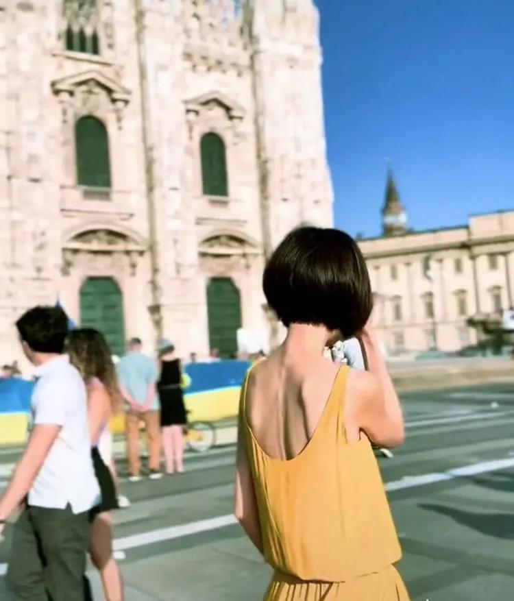 54岁陈鲁豫晒意大利米兰游玩照,瘦成排骨胸筷子腿,瘦小的身板似“纸片人。称:从不