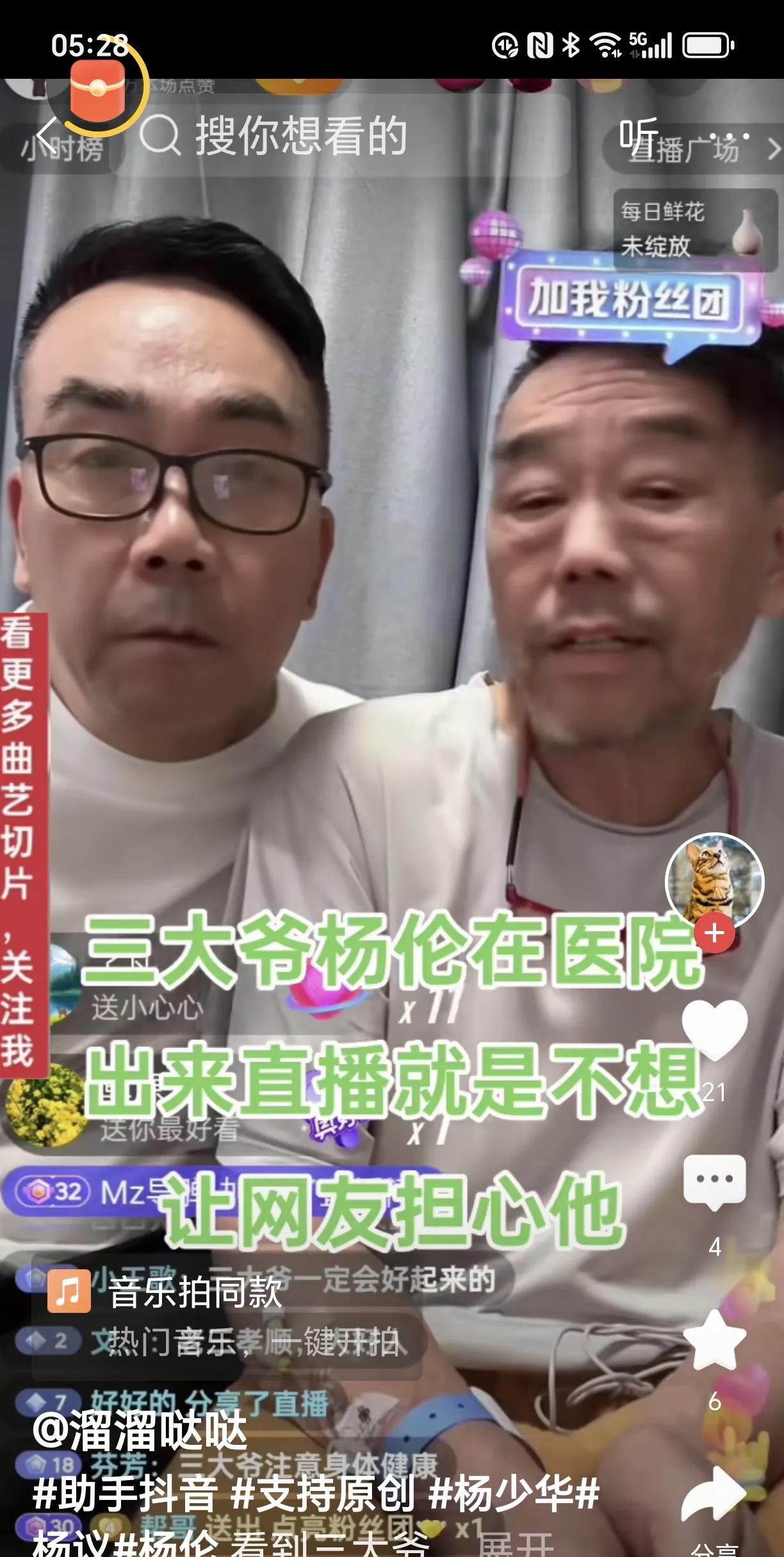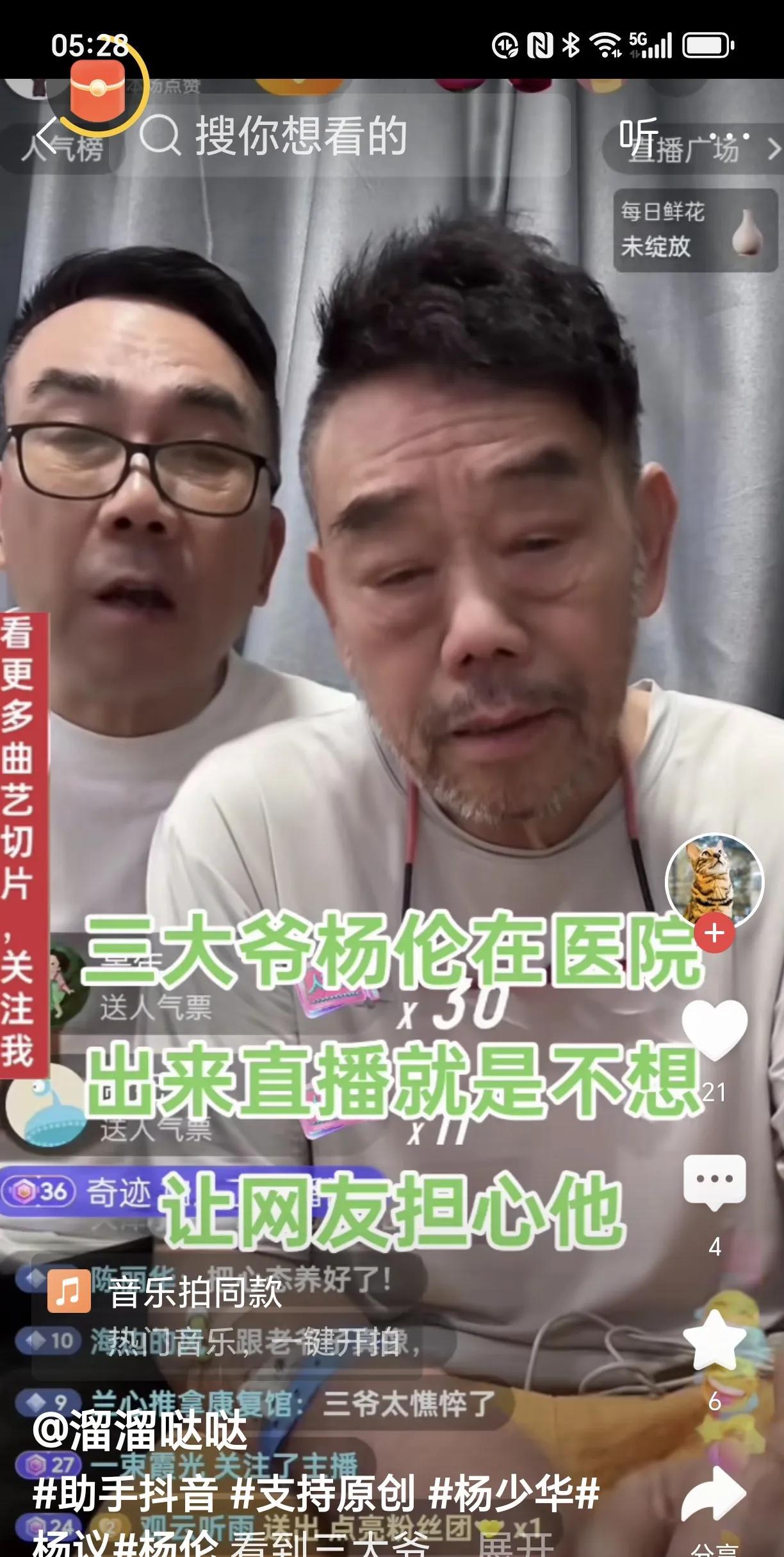 杨老五带着他的团队去医院看望老三,老三还在医院,看着老三憔悴的样子,是网友们感觉这位对父亲去世确实心里承受了巨大的悲痛与压力,面部表情,胡子邋遢,杨老五还用这个砸挂这个不代表什么惹的,他的小助理哈哈大笑,不愧是相声世家出身,杨老五还在视频当中介绍了他的杨家酱为产品做广告。老三,马上制止。你们这是来看我来了,不要在这里做广告,一家子活宝其乐融融也挺有意思