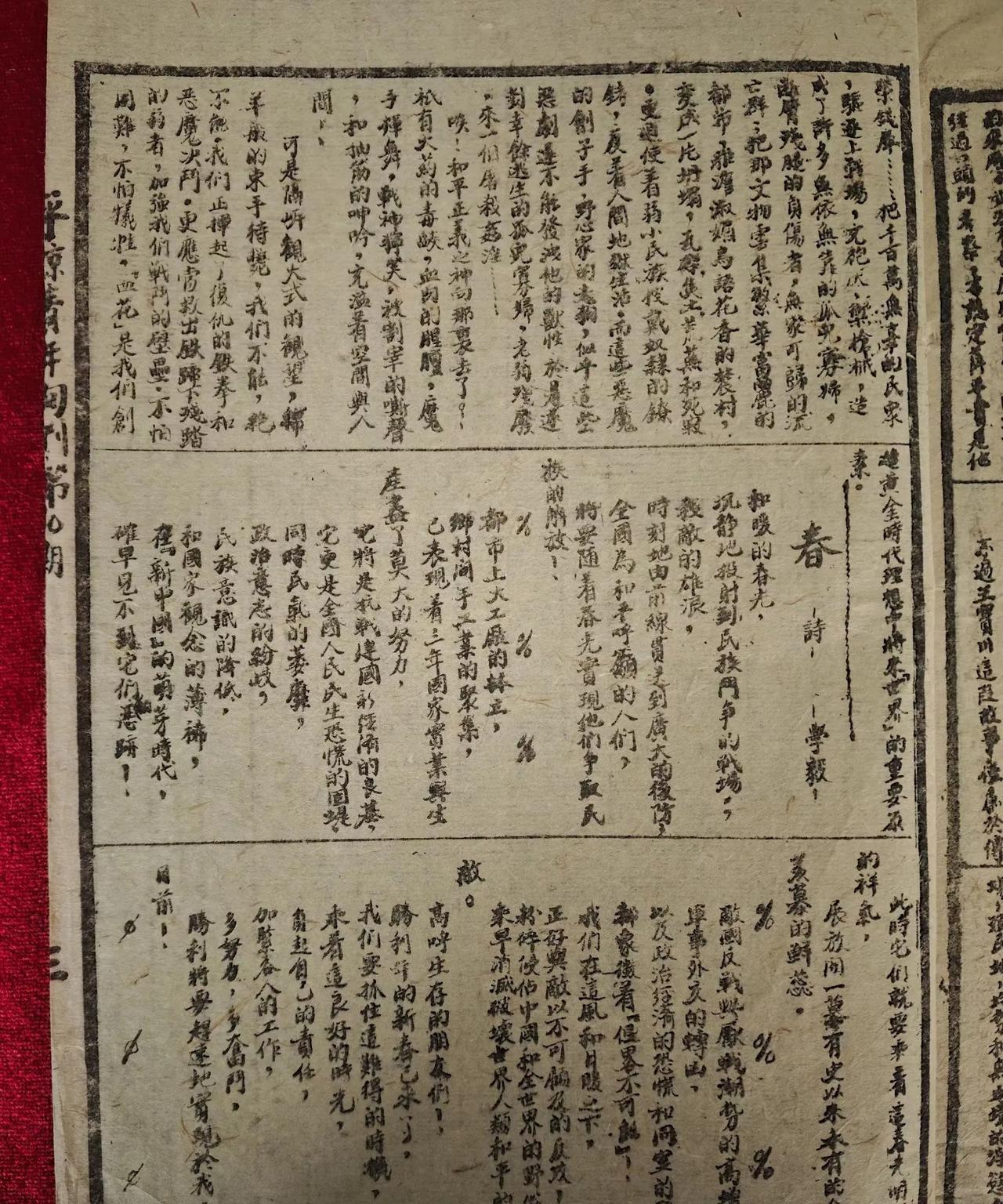 甘肃发现抗战时期的珍稀油印杂志《平凉青年》!刊登的文章有《领袖言行》《现阶段教育的意义和使命》《青年问题》《如何才能抗战建国成功》《春》《马步青200师的》……这本杂志是平凉青年旬刊社组织出版的,社址在 望台巷26号。此为第十期。 感谢临洮辛店文化博物馆提供珍贵档案支持
