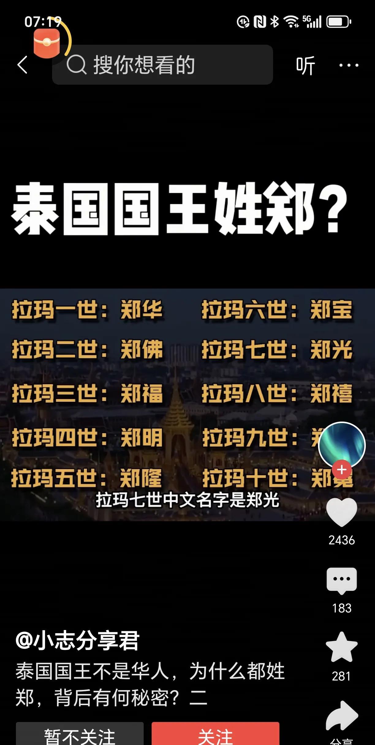 泰国这个君主制国家,大家知道吗?泰王国王都有一个中国名字,从一世到十世,泰国国王姓郑