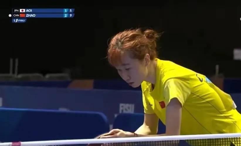 世界大学生夏季运动会乒乓球女团决赛,中国队对阵日本队,中国队由王晓彤、杨屹韵、赵尚出战,日本队派出泽杏佳、面田采巳和青井,经过五盘激战,杨屹韵丢掉两分,最终中国队2-3不敌日本队,收获女团亚军。男团决赛,中国队也以2-3负于中国台北队,也没能拿到金牌。