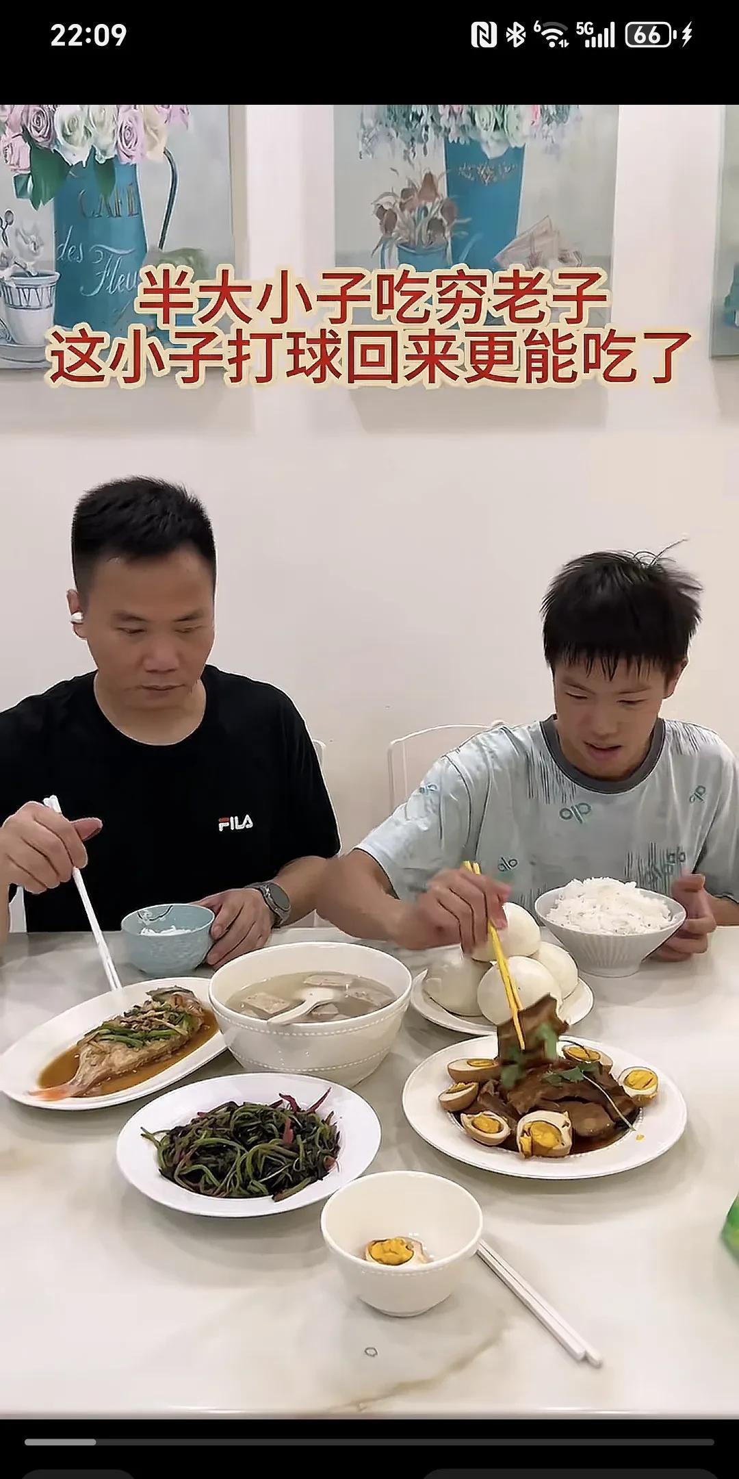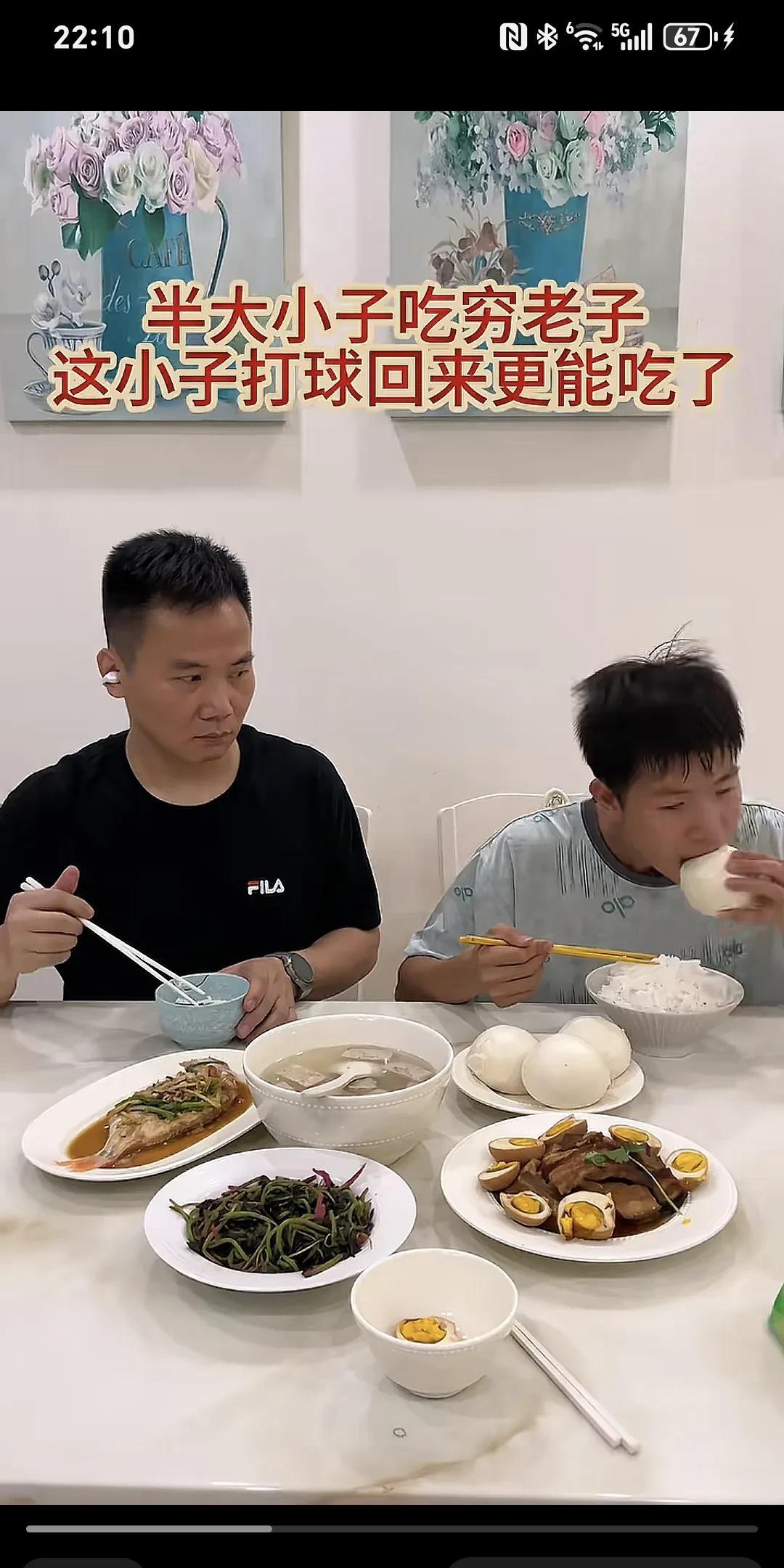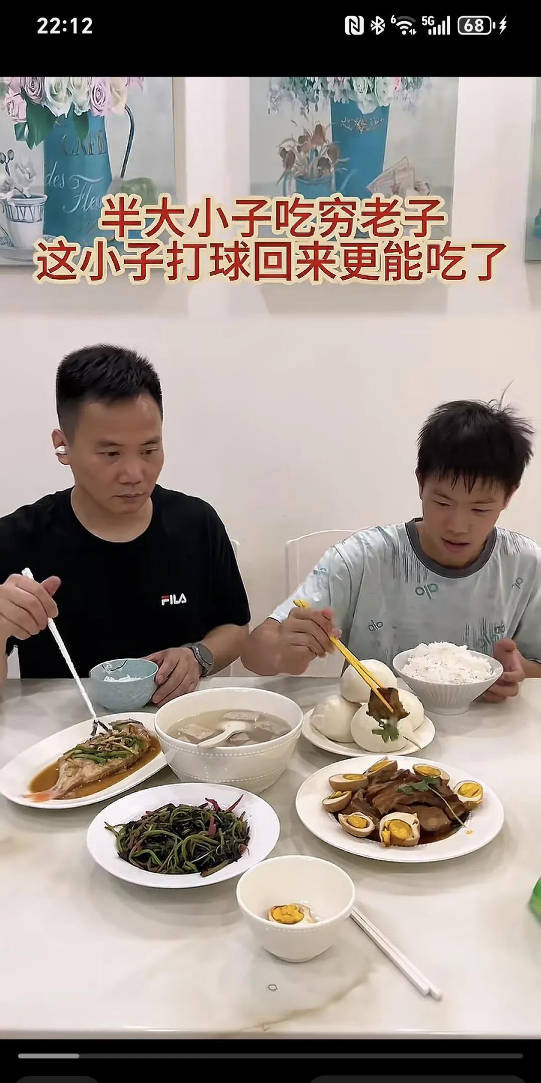 半大小子吃穷老子,这小子打球回来更能吃了~ 主要是馒头我自己要吃的,没想到他回来饿的吃了口米饭,还拿了个馒头吃,爸爸都看傻眼了。 大半小子,吃穷老子,这爹愣住了...姐姐没在家,小子打球回来就像饿死鬼一样,二胎家庭,一顿饭二斤米吃的盆干碗净。 每次都不忘给老爸夹一块肉,表明了自己还是有良心的。