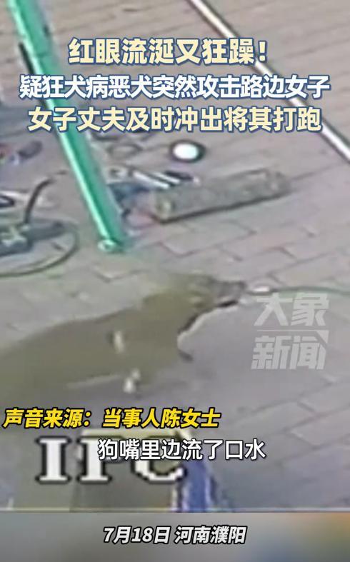 “太可怕了!”7月18日,河南濮阳,女子在家门口时,一条眼睛泛红、流着口水、走路跌跌撞撞的大狗突然冲过来咬她,女子吓得连连躲闪,就在快咬到女子时,丈夫赶了过来打跑大狗!网友:应该是狂犬病发作了。 这天,陈女士正在家门口闲逛,忽然,她注意到不远处有一条大黄狗的状态不对,走起路来七扭八歪,而且眼睛还泛着红光。 陈女士瞬间警惕起来,不料,大黄狗在走近后突然猛扑过来,陈女士情急之下一边大喊大叫,一边用手中的水瓶子驱赶疯狗。 另一边,丈夫被妻子的尖叫声所吸引,抄起电动车充电器就飞奔过来救人,一下甩在狗身上打坏了! 疯狗吃痛急忙逃走了,丈夫和陈女士都还沉浸在惊慌中。 网友看后表示,当地居民一定要小心,这狗应该就是得了狂犬病,建议大家一起搜寻将其逮捕处理掉,不然随时有可能咬伤别人。 大家对于这件事是怎么看的? 信息来源:《7月18日,河南濮阳一女子陈女士在家门口遭遇恶犬攻击,其丈夫果断出手将狗打跑》大象新闻